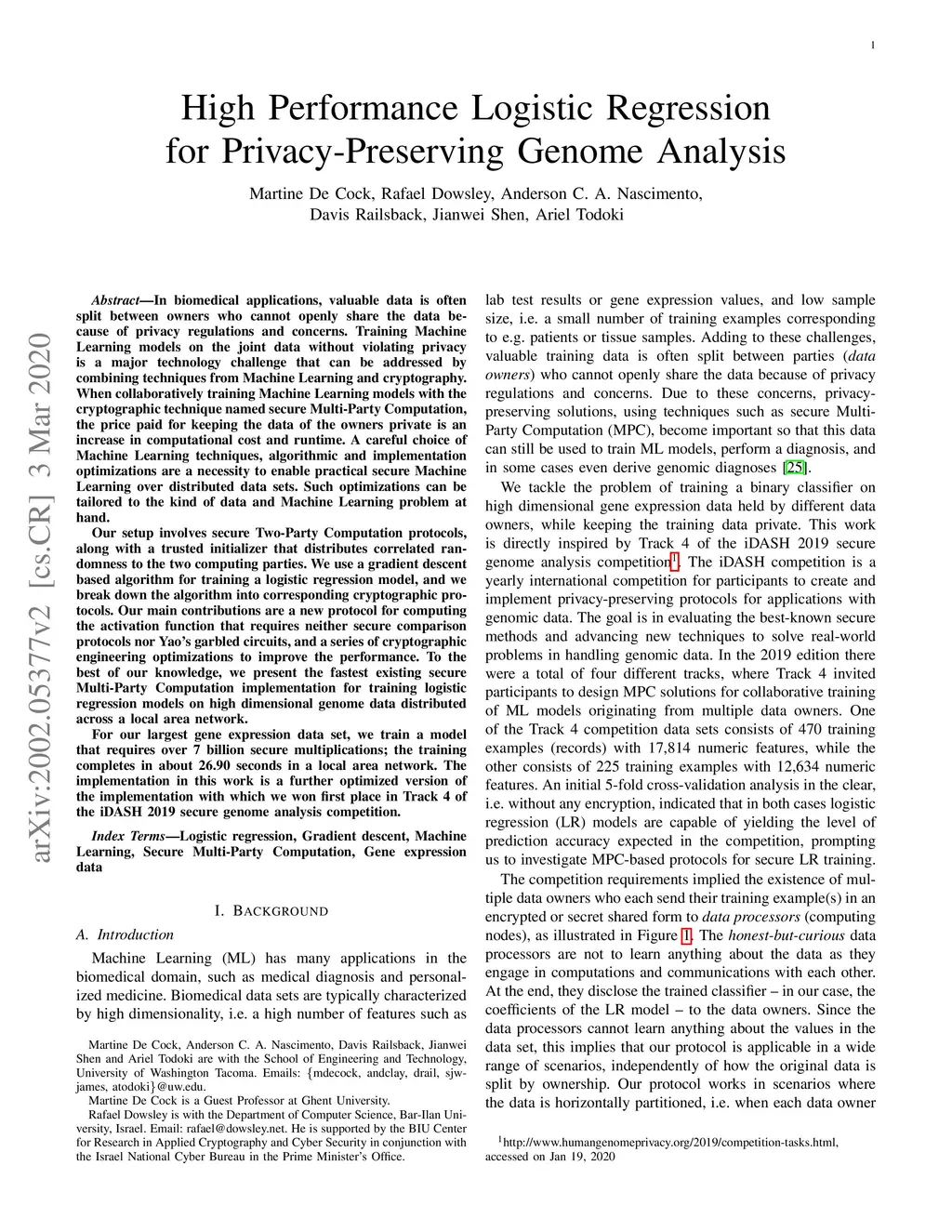 High Performance Logistic Regression for Privacy-Preserving Genome