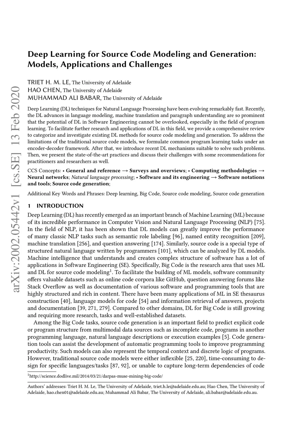Deep Learning for Source Code Modeling and Generation: Models,