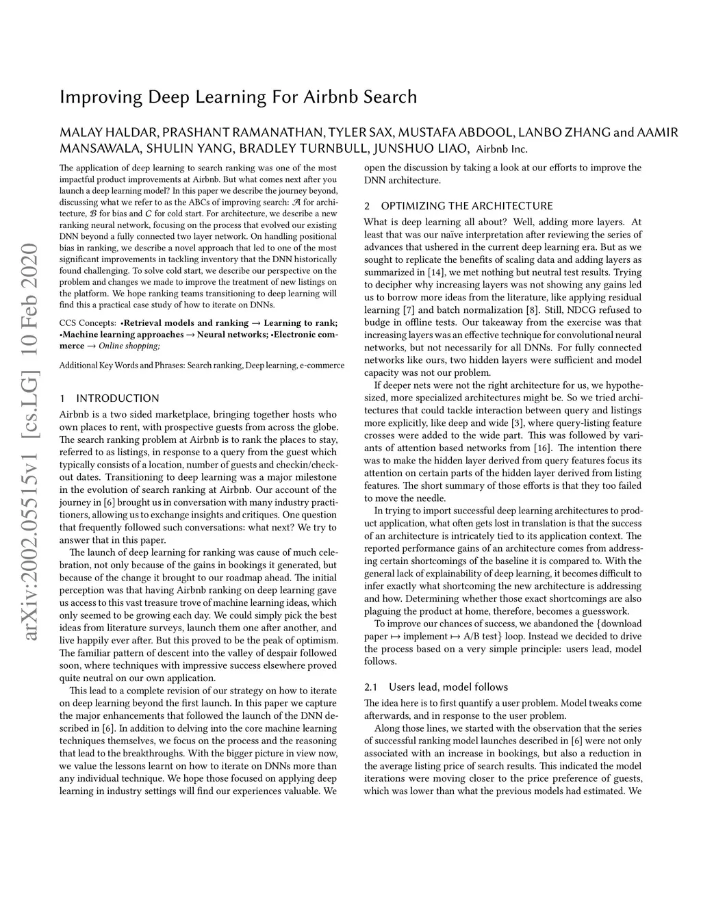 The application of deep learning to search ranking was one of the most impactful product improvements at Airbnb. But what comes next after you launch a deep learning model? In this paper we describe the journey beyond, discussing what we refer to as the ABCs of improving search: A for architecture, B for bias and C for cold start. For architecture, we describe a new ranking neural network, focusing on the process that evolved our existing DNN beyond a fully connected two layer network. On handling positional bias in ranking, we describe a novel approach that led to one of the most significant improvements in tackling inventory that the DNN historically found challenging. To solve cold start, we describe our perspective on the problem and changes we made to improve the treatment of new listings on the platform. We hope ranking teams transitioning to deep learning will find this a practical case study of how to iterate on DNNs.