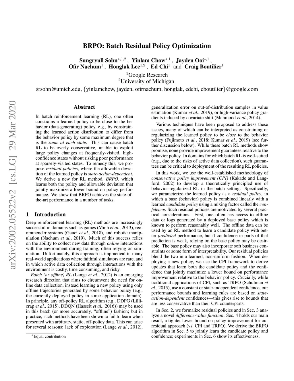 BRPO: Batch Residual Policy Optimization