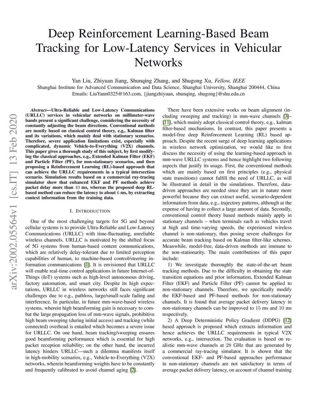 Ultra-Reliable and Low-Latency Communications (URLLC) services in vehicular networks on millimeter-wave bands present a significant challenge, considering the necessity of constantly adjusting the beam directions. Conventional methods are mostly based on classical control theory, e.g., Kalman filter and its variations, which mainly deal with stationary scenarios. Therefore, severe application limitations exist, especially with complicated, dynamic Vehicle-to-Everything (V2X) channels. This paper gives a thorough study of this subject, by first modifying the classical approaches, e.g., Extended Kalman Filter (EKF) and Particle Filter (PF), for non-stationary scenarios, and then proposing a Reinforcement Learning (RL)-based approach that can achieve the URLLC requirements in a typical intersection scenario. Simulation results based on a commercial ray-tracing simulator show that enhanced EKF and PF methods achieve packet delay more than ms, whereas the proposed deep RL-based method can reduce the latency to about ms, by extracting context information from the training data.
