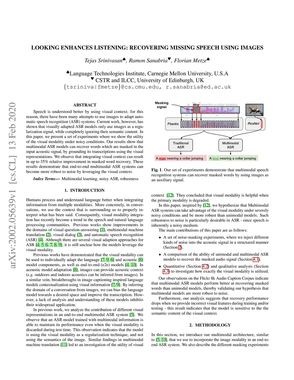 Looking Enhances Listening: Recovering Missing Speech Using Images