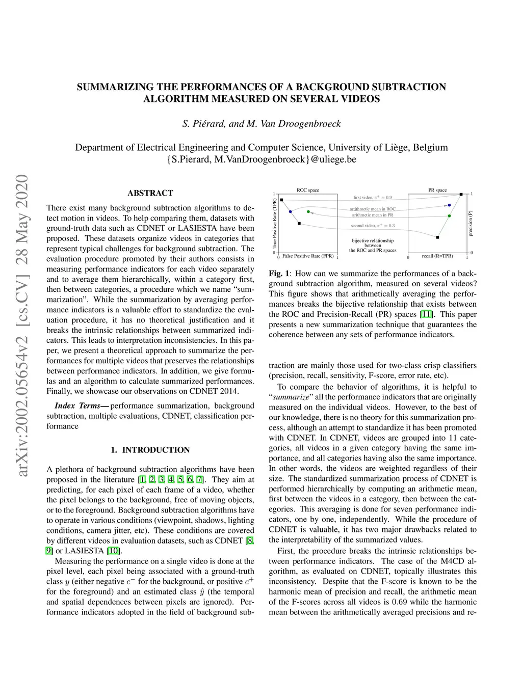 There exist many background subtraction algorithms to detect motion in videos. To help comparing them, datasets with ground-truth data such as CDNET or LASIESTA have been proposed. These datasets organize videos in categories that represent typical challenges for background subtraction. The evaluation procedure promoted by their authors consists in measuring performance indicators for each video separately and to average them hierarchically, within a category first, then between categories, a procedure which we name "summarization". While the summarization by averaging performance indicators is a valuable effort to standardize the evaluation procedure, it has no theoretical justification and it breaks the intrinsic relationships between summarized indicators. This leads to interpretation inconsistencies. In this paper, we present a theoretical approach to summarize the performances for multiple videos that preserves the relationships between performance indicators. In addition, we give formulas and an algorithm to calculate summarized performances. Finally, we showcase our observations on CDNET 2014.