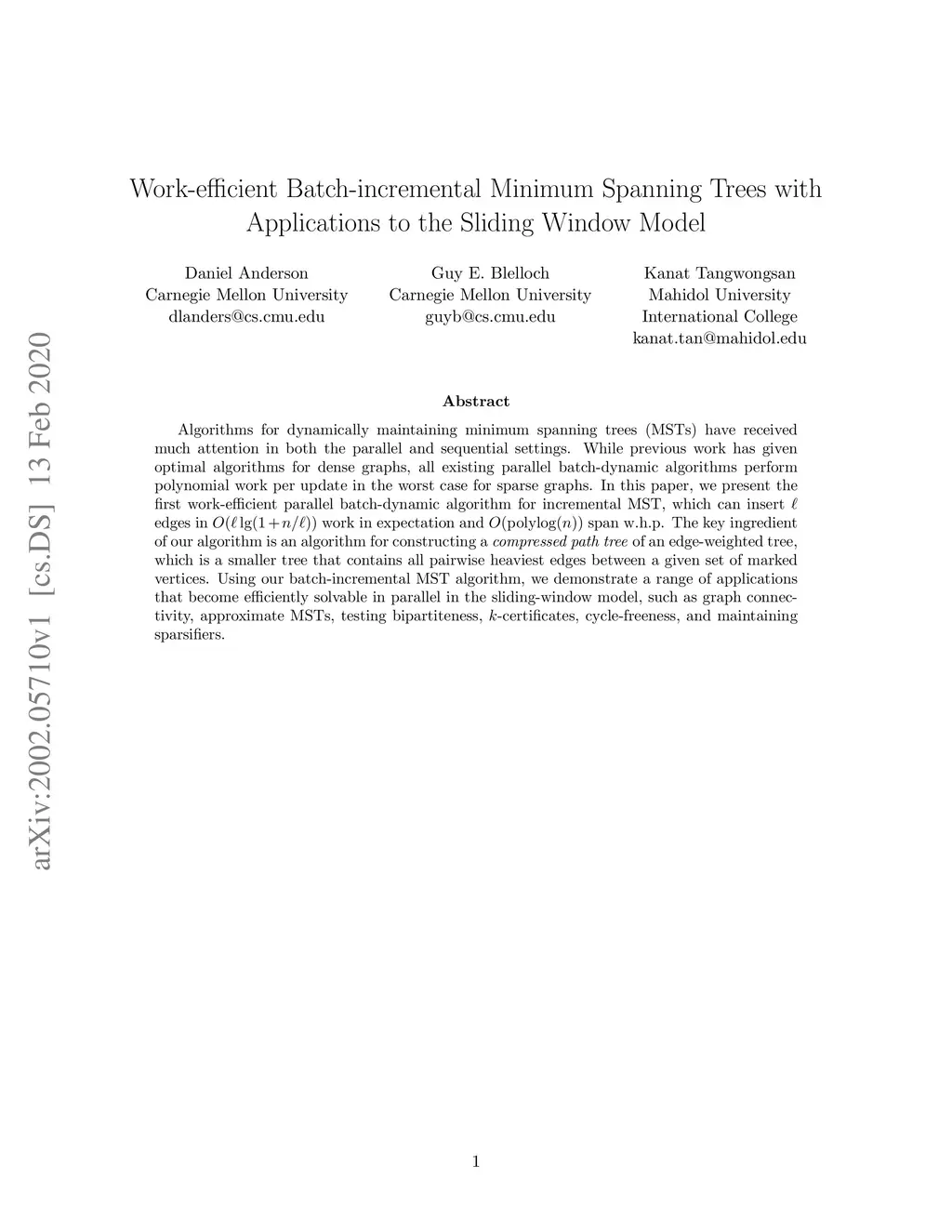 Algorithms for dynamically maintaining minimum spanning trees (MSTs) have received much attention in both the parallel and sequential settings. While previous work has given optimal algorithms for dense graphs, all existing parallel batch-dynamic algorithms perform polynomial work per update in the worst case for sparse graphs. In this paper, we present the first work-efficient parallel batch-dynamic algorithm for incremental MST, which can insert edges in work in expectation and span w.h.p. The key ingredient of our algorithm is an algorithm for constructing a compressed path tree of an edge-weighted tree, which is a smaller tree that contains all pairwise heaviest edges between a given set of marked vertices. Using our batch-incremental MST algorithm, we demonstrate a range of applications that become efficiently solvable in parallel in the sliding-window model, such as graph connectivity, approximate MSTs, testing bipartiteness, -certificates, cycle-freeness, and maintaining sparsifiers.