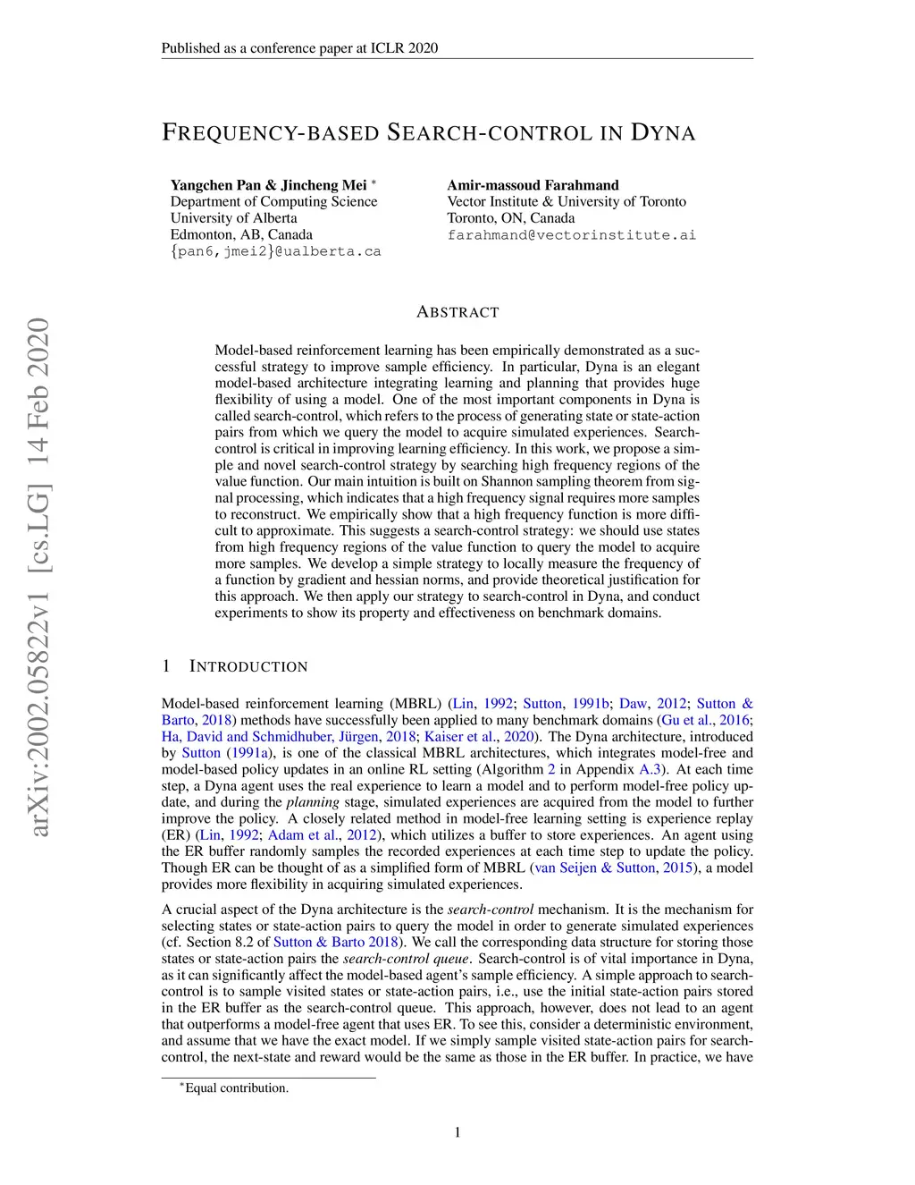 Model-based reinforcement learning has been empirically demonstrated as a successful strategy to improve sample efficiency. In particular, Dyna is an elegant model-based architecture integrating learning and planning that provides huge flexibility of using a model. One of the most important components in Dyna is called search-control, which refers to the process of generating state or state-action pairs from which we query the model to acquire simulated experiences. Search-control is critical in improving learning efficiency. In this work, we propose a simple and novel search-control strategy by searching high frequency regions of the value function. Our main intuition is built on Shannon sampling theorem from signal processing, which indicates that a high frequency signal requires more samples to reconstruct. We empirically show that a high frequency function is more difficult to approximate. This suggests a search-control strategy: we should use states from high frequency regions of the value function to query the model to acquire more samples. We develop a simple strategy to locally measure the frequency of a function by gradient and hessian norms, and provide theoretical justification for this approach. We then apply our strategy to search-control in Dyna, and conduct experiments to show its property and effectiveness on benchmark domains.