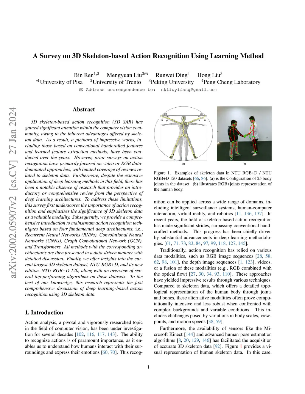 A Survey on 3D Skeleton-Based Action Recognition Using Learning Method