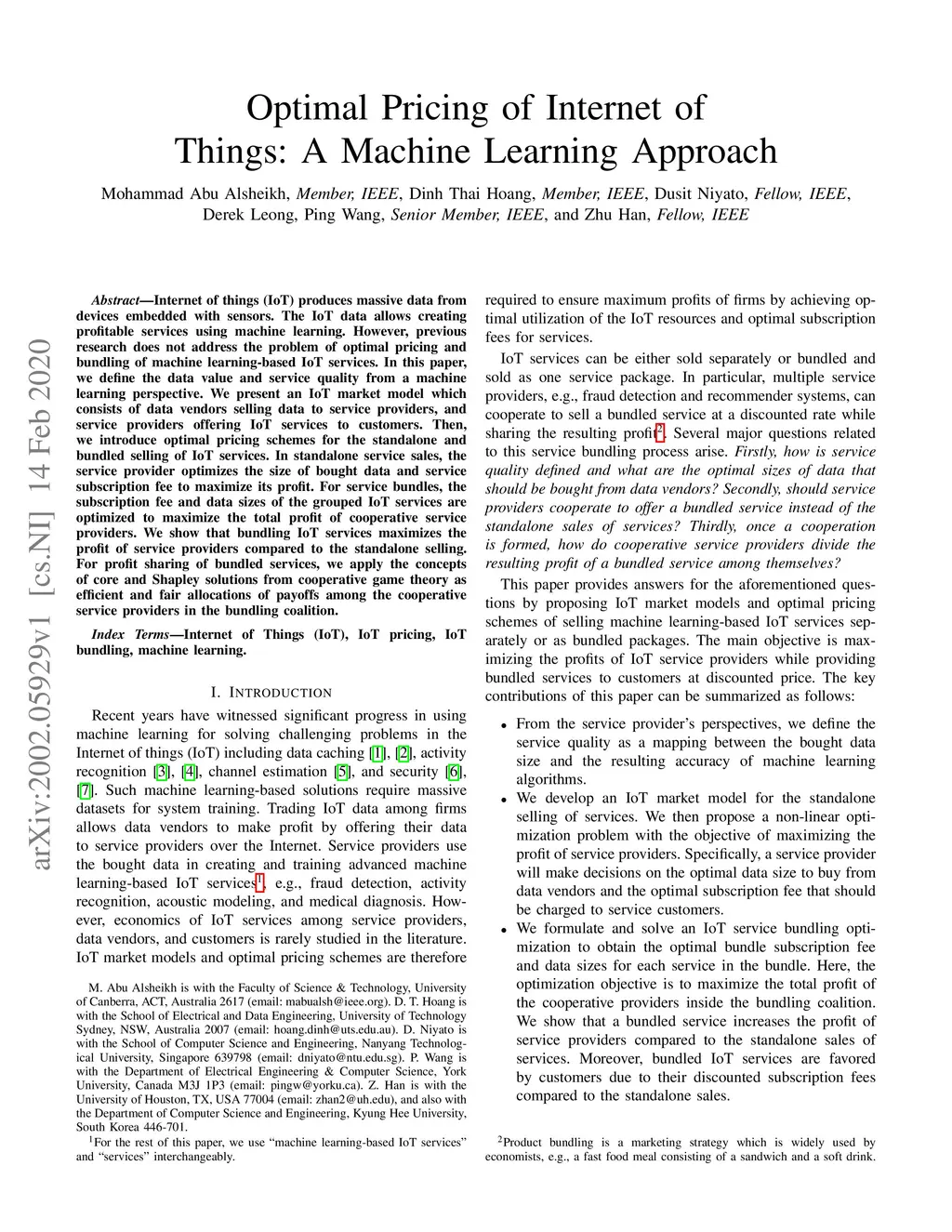 Optimal Pricing of Internet of Things: A Machine Learning Approach