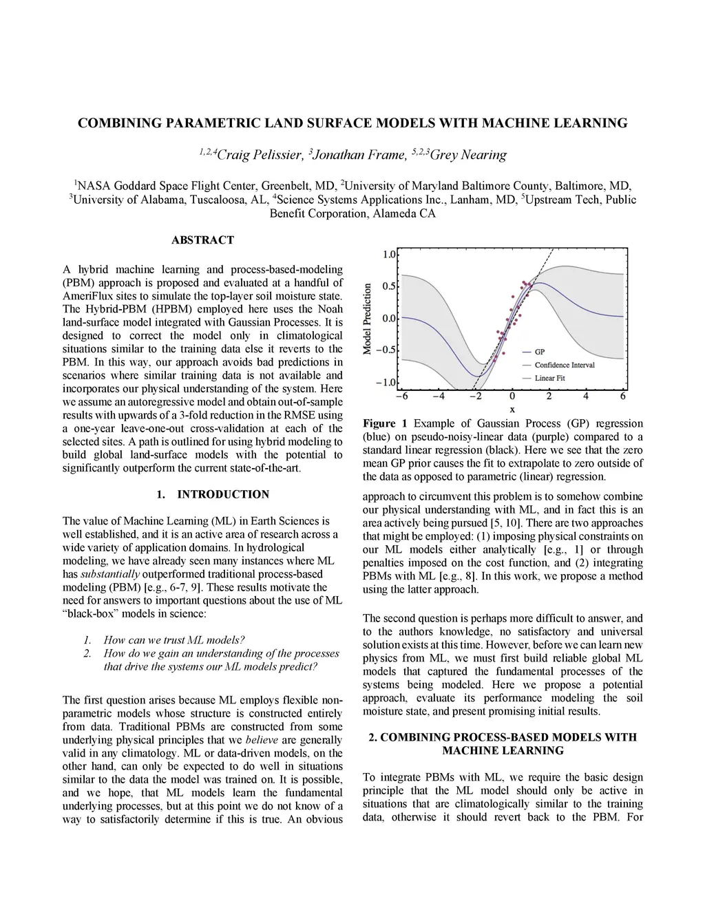 A hybrid machine learning and process-based-modeling (PBM) approach is proposed and evaluated at a handful of AmeriFlux sites to simulate the top-layer soil moisture state. The Hybrid-PBM (HPBM) employed here uses the Noah land-surface model integrated with Gaussian Processes. It is designed to correct the model only in climatological situations similar to the training data else it reverts to the PBM. In this way, our approach avoids bad predictions in scenarios where similar training data is not available and incorporates our physical understanding of the system. Here we assume an autoregressive model and obtain out-of-sample results with upwards of a 3-fold reduction in the RMSE using a one-year leave-one-out cross-validation at each of the selected sites. A path is outlined for using hybrid modeling to build global land-surface models with the potential to significantly outperform the current state-of-the-art.