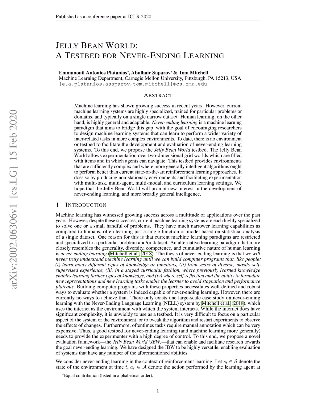 Jelly Bean World: A Testbed for Never-Ending Learning