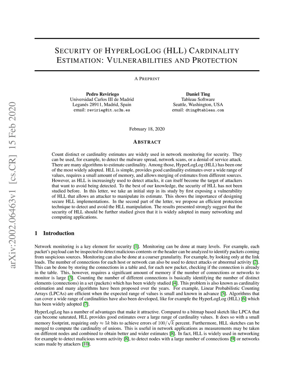 Security of HyperLogLog (HLL) Cardinality Estimation: Vulnerabilities