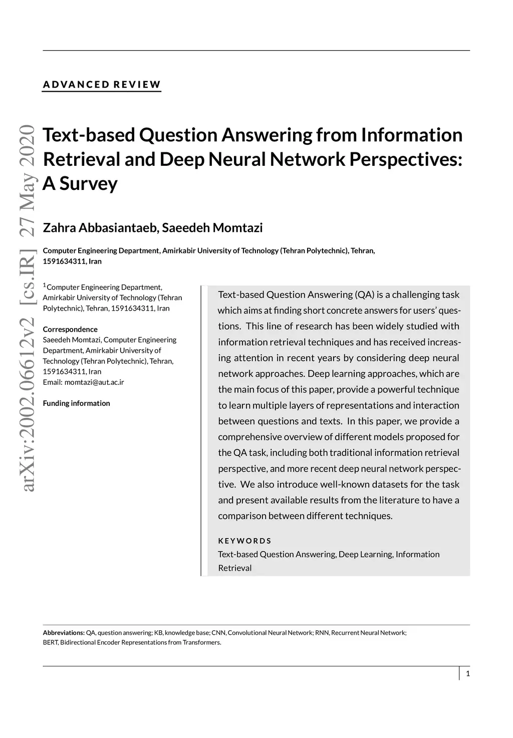 Text-based Question Answering (QA) is a challenging task which aims at finding short concrete answers for users' questions. This line of research has been widely studied with information retrieval techniques and has received increasing attention in recent years by considering deep neural network approaches. Deep learning approaches, which are the main focus of this paper, provide a powerful technique to learn multiple layers of representations and interaction between questions and texts. In this paper, we provide a comprehensive overview of different models proposed for the QA task, including both traditional information retrieval perspective, and more recent deep neural network perspective. We also introduce well-known datasets for the task and present available results from the literature to have a comparison between different techniques.