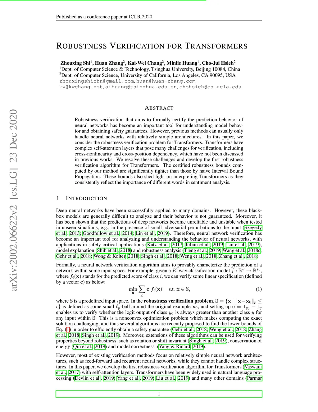 Robustness Verification for Transformers