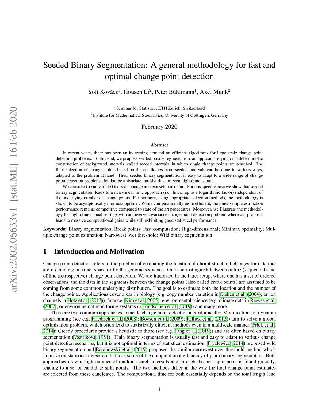 Seeded Binary Segmentation: A general methodology for fast and optimal