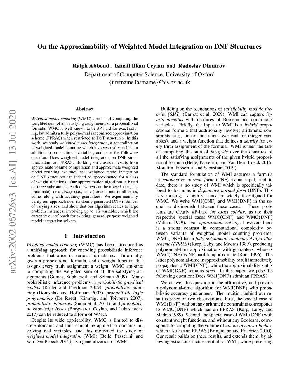 Weighted model counting (WMC) consists of computing the weighted sum of all satisfying assignments of a propositional formula. WMC is well-known to be #P-hard for exact solving, but admits a fully polynomial randomized approximation scheme (FPRAS) when restricted to DNF structures. In this work, we study weighted model integration, a generalization of weighted model counting which involves real variables in addition to propositional variables, and pose the following question: Does weighted model integration on DNF structures admit an FPRAS? Building on classical results from approximate volume computation and approximate weighted model counting, we show that weighted model integration on DNF structures can indeed be approximated for a class of weight functions. Our approximation algorithm is based on three subroutines, each of which can be a weak (i.e., approximate), or a strong (i.e., exact) oracle, and in all cases, comes along with accuracy guarantees. We experimentally verify our approach over randomly generated DNF instances of varying sizes, and show that our algorithm scales to large problem instances, involving up to 1K variables, which are currently out of reach for existing, general-purpose weighted model integration solvers.