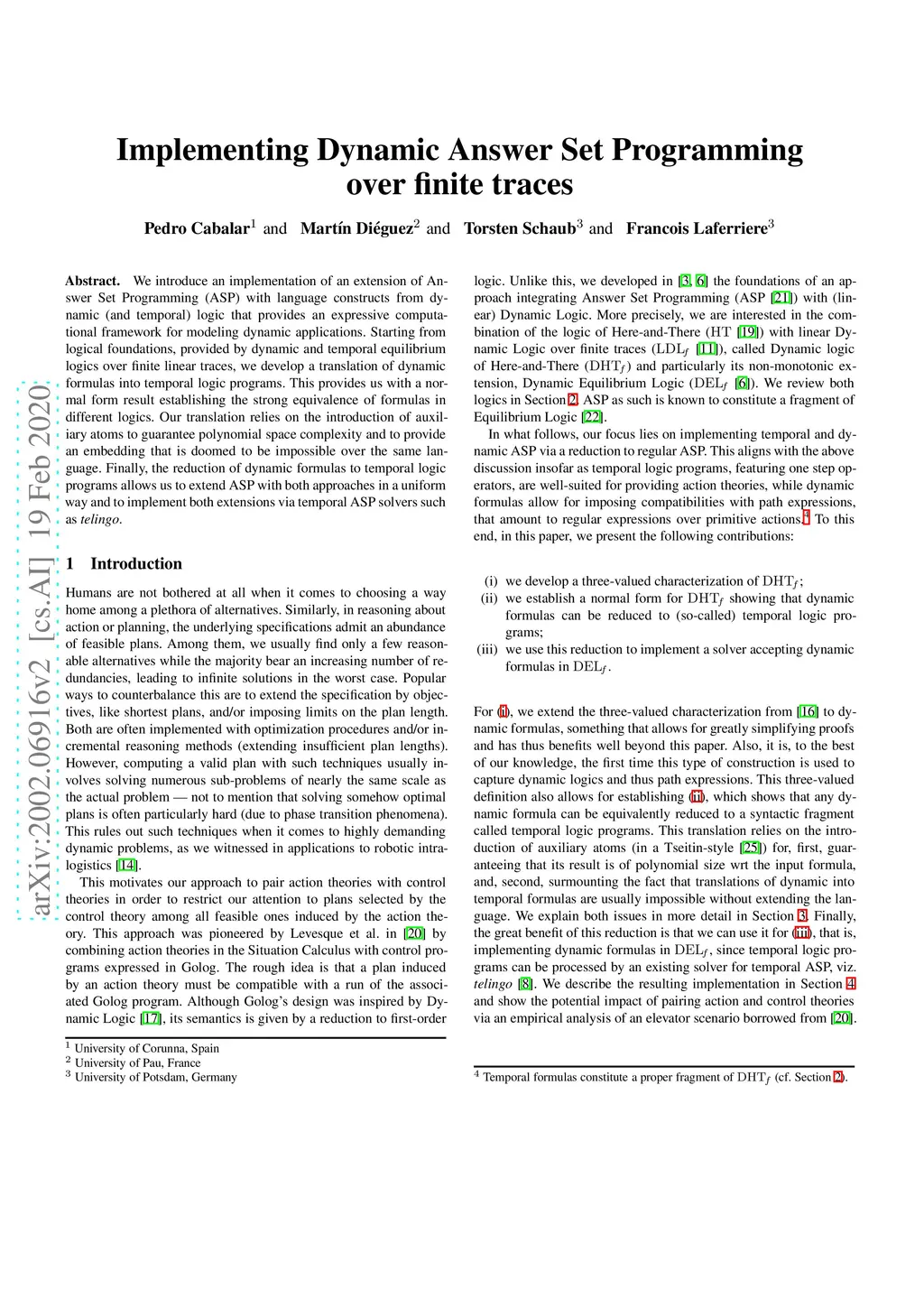 We introduce an implementation of an extension of Answer Set Programming (ASP) with language constructs from dynamic (and temporal) logic that provides an expressive computational framework for modeling dynamic applications. Starting from logical foundations, provided by dynamic and temporal equilibrium logics over finite linear traces, we develop a translation of dynamic formulas into temporal logic programs. This provides us with a normal form result establishing the strong equivalence of formulas in different logics. Our translation relies on the introduction of auxiliary atoms to guarantee polynomial space complexity and to provide an embedding that is doomed to be impossible over the same language. Finally, the reduction of dynamic formulas to temporal logic programs allows us to extend ASP with both approaches in a uniform way and to implement both extensions via temporal ASP solvers such as telingo