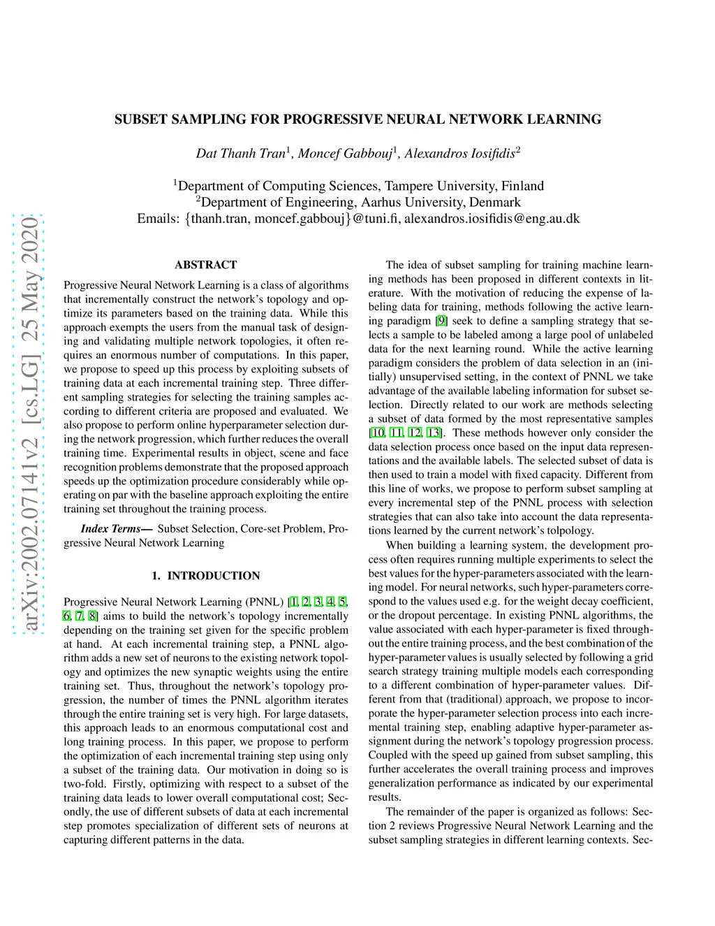 Subset Sampling For Progressive Neural Network Learning