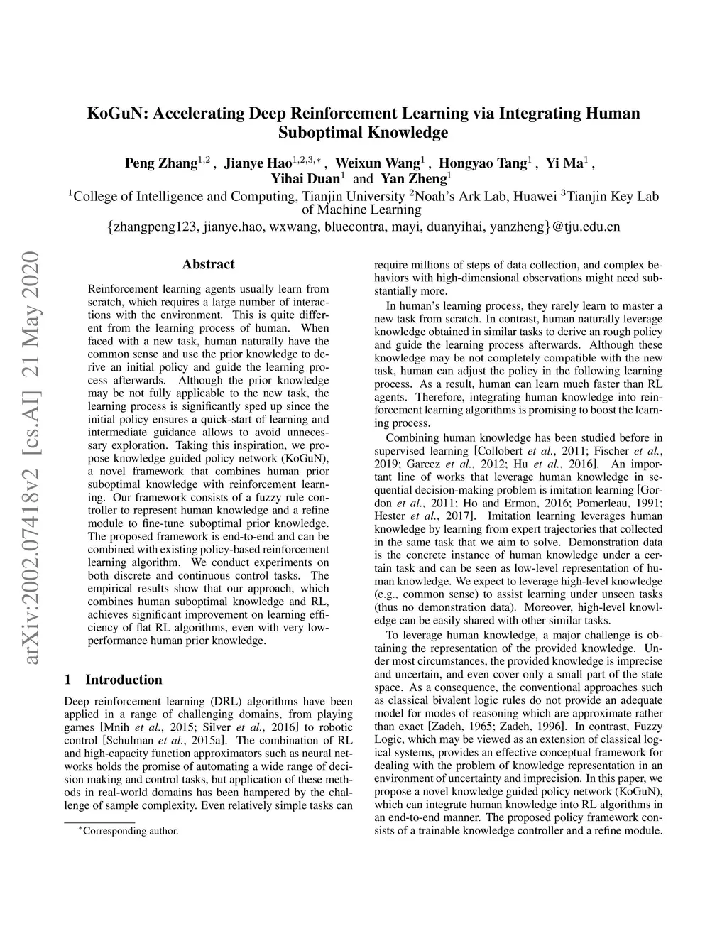 KoGuN: Accelerating Deep Reinforcement Learning via Integrating Human