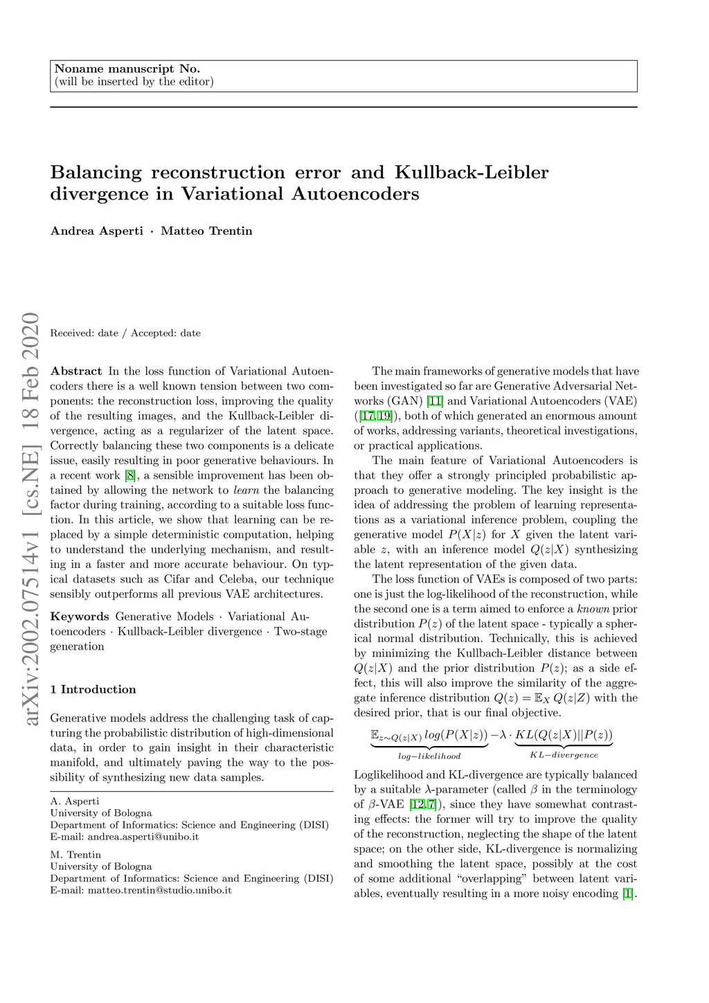 Balancing reconstruction error and Kullback-Leibler divergence in