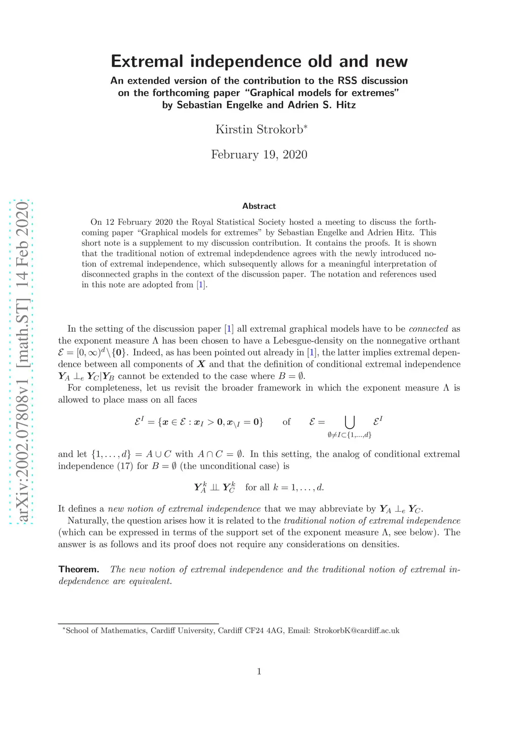 On 12 February 2020 the Royal Statistical Society hosted a meeting to discuss the forthcoming paper ``Graphical models for extremes'' by Sebastian Engelke and Adrien Hitz [arXiv:1812.01734]. This short note is a supplement to my discussion contribution. It contains the proofs. It is shown that the traditional notion of extremal independence agrees with the newly introduced notion of extremal independence, which subsequently allows for a meaningful interpretation of disconnected graphs in the context of the discussion paper. The notation and references used in this note are adopted from the discussion paper.