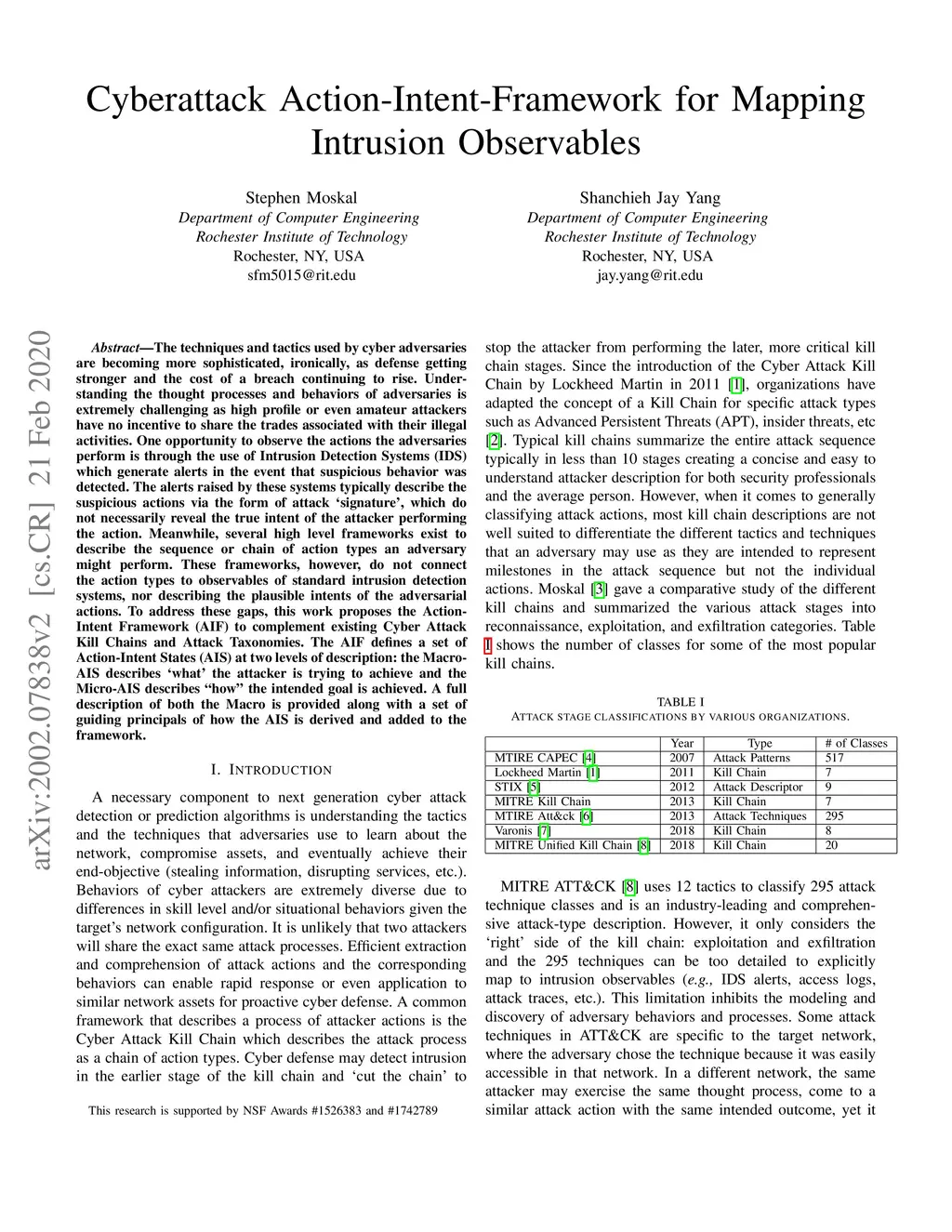 Cyberattack Action-Intent-Framework for Mapping Intrusion Observables