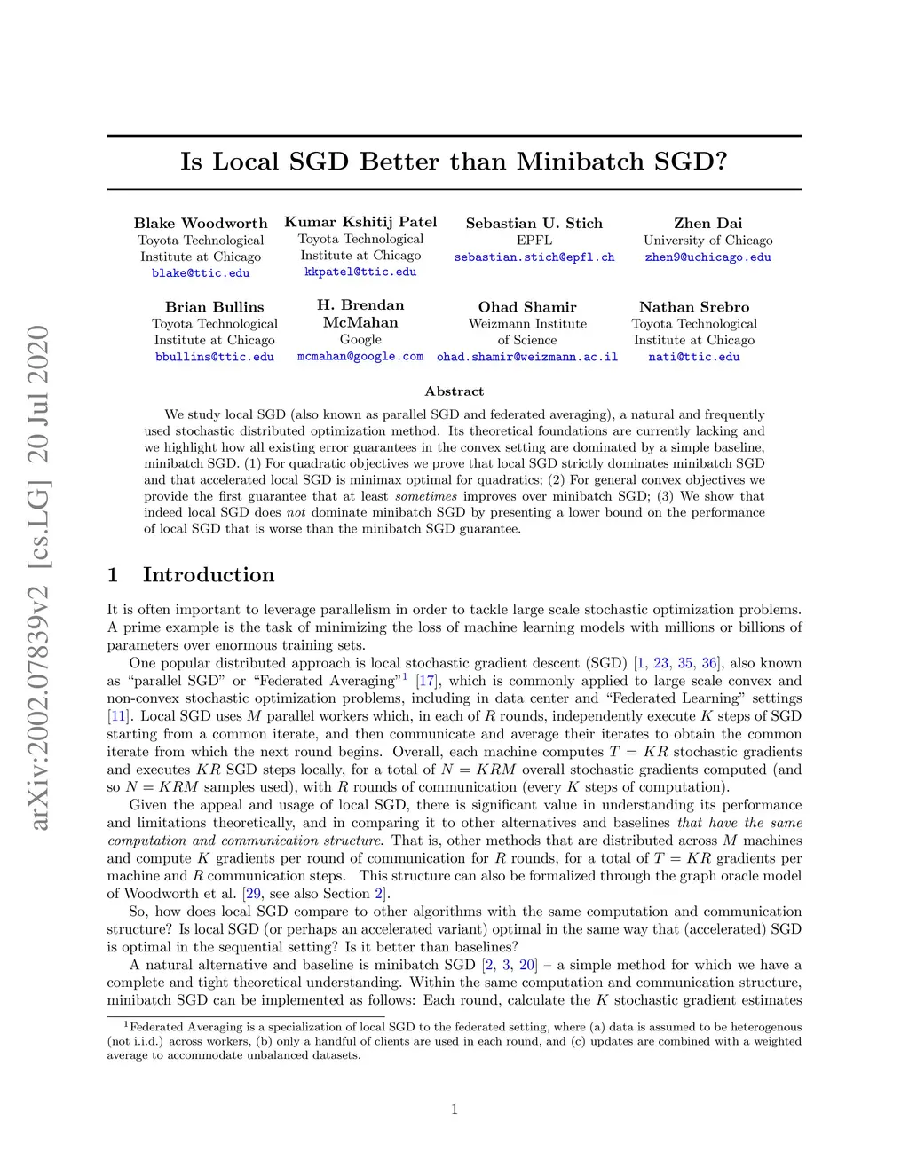 We study local SGD (also known as parallel SGD and federated averaging), a natural and frequently used stochastic distributed optimization method. Its theoretical foundations are currently lacking and we highlight how all existing error guarantees in the convex setting are dominated by a simple baseline, minibatch SGD. (1) For quadratic objectives we prove that local SGD strictly dominates minibatch SGD and that accelerated local SGD is minimax optimal for quadratics; (2) For general convex objectives we provide the first guarantee that at least sometimes improves over minibatch SGD; (3) We show that indeed local SGD does not dominate minibatch SGD by presenting a lower bound on the performance of local SGD that is worse than the minibatch SGD guarantee.