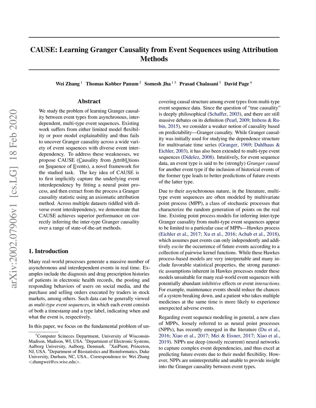 CAUSE: Learning Granger Causality from Event Sequences using Attribution