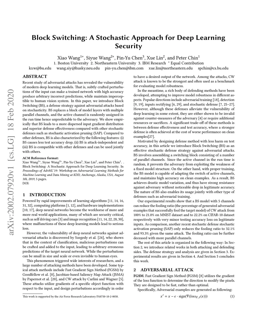 Block Switching: A Stochastic Approach for Deep Learning Security