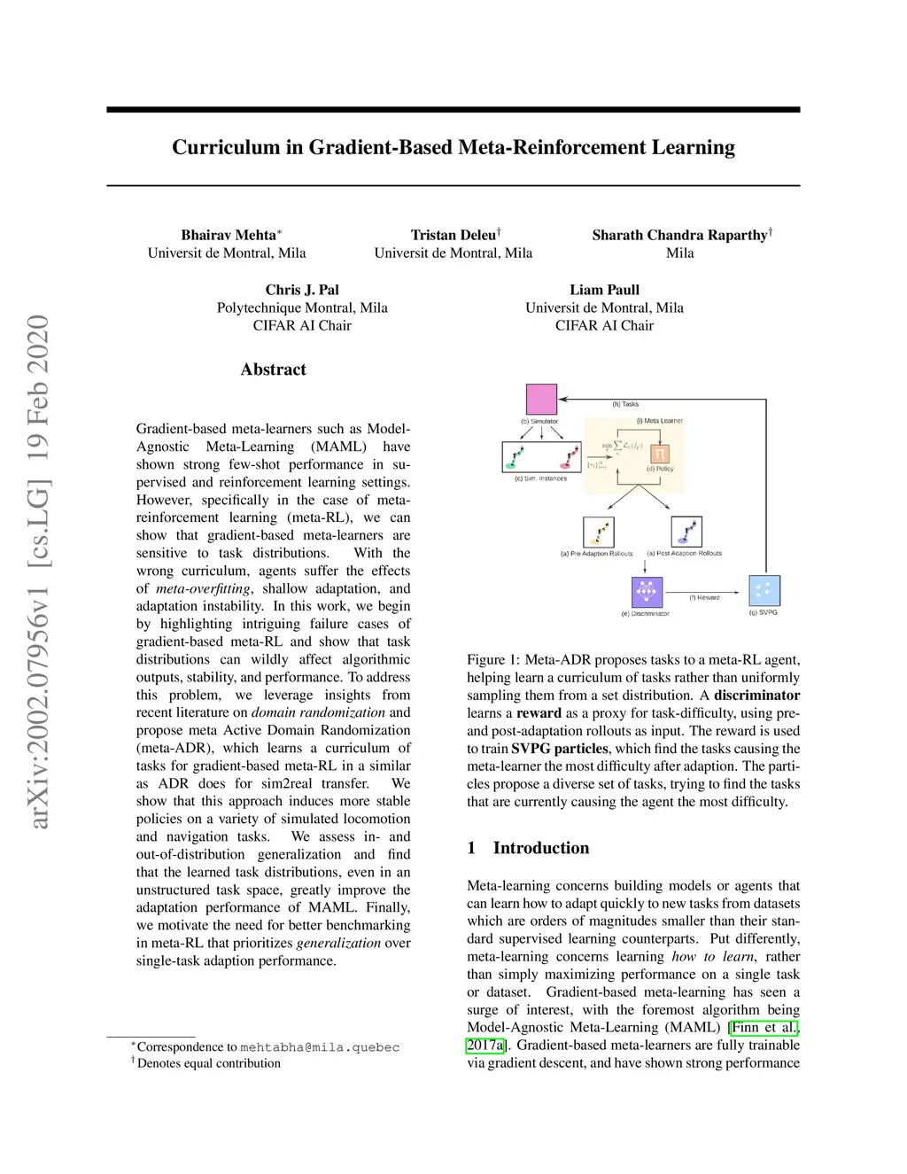 Gradient-based meta-learners such as Model-Agnostic Meta-Learning (MAML) have shown strong few-shot performance in supervised and reinforcement learning settings. However, specifically in the case of meta-reinforcement learning (meta-RL), we can show that gradient-based meta-learners are sensitive to task distributions. With the wrong curriculum, agents suffer the effects of meta-overfitting, shallow adaptation, and adaptation instability. In this work, we begin by highlighting intriguing failure cases of gradient-based meta-RL and show that task distributions can wildly affect algorithmic outputs, stability, and performance. To address this problem, we leverage insights from recent literature on domain randomization and propose meta Active Domain Randomization (meta-ADR), which learns a curriculum of tasks for gradient-based meta-RL in a similar as ADR does for sim2real transfer. We show that this approach induces more stable policies on a variety of simulated locomotion and navigation tasks. We assess in- and out-of-distribution generalization and find that the learned task distributions, even in an unstructured task space, greatly improve the adaptation performance of MAML. Finally, we motivate the need for better benchmarking in meta-RL that prioritizes \textit{generalization} over single-task adaption performance.
