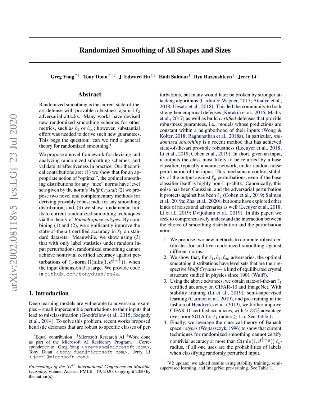 Randomized Smoothing of All Shapes and Sizes