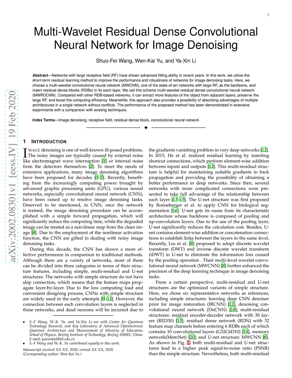 Multi-wavelet residual dense convolutional neural network for image