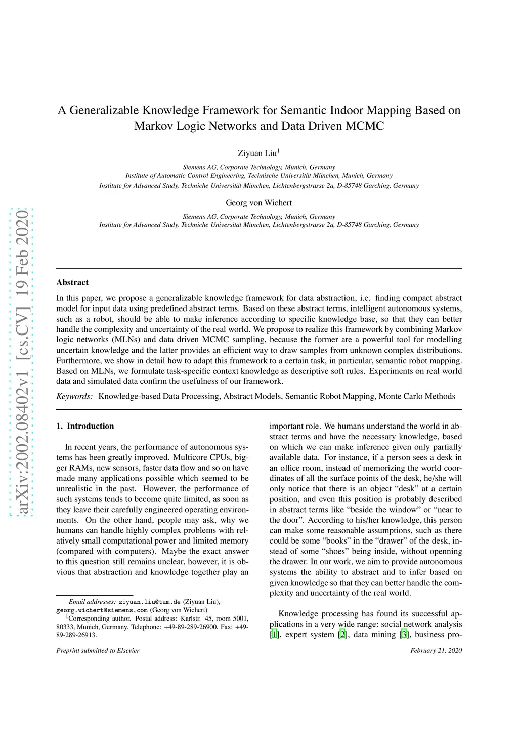 In this paper, we propose a generalizable knowledge framework for data abstraction, i.e. finding compact abstract model for input data using predefined abstract terms. Based on these abstract terms, intelligent autonomous systems, such as a robot, should be able to make inference according to specific knowledge base, so that they can better handle the complexity and uncertainty of the real world. We propose to realize this framework by combining Markov logic networks (MLNs) and data driven MCMC sampling, because the former are a powerful tool for modelling uncertain knowledge and the latter provides an efficient way to draw samples from unknown complex distributions. Furthermore, we show in detail how to adapt this framework to a certain task, in particular, semantic robot mapping. Based on MLNs, we formulate task-specific context knowledge as descriptive soft rules. Experiments on real world data and simulated data confirm the usefulness of our framework.