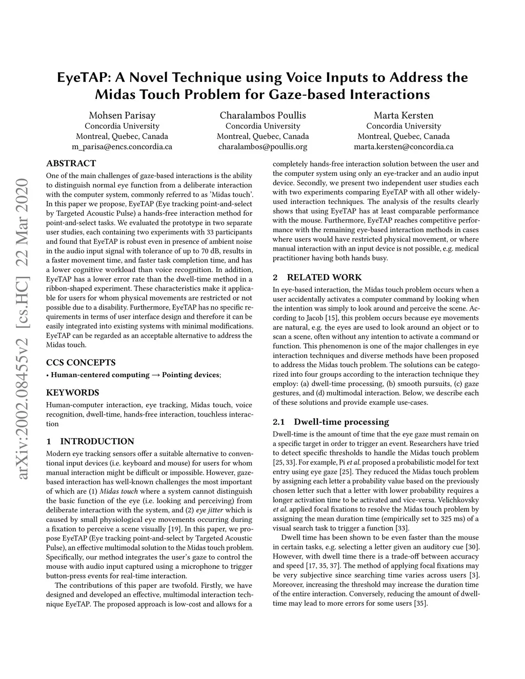 EyeTAP: A Novel Technique using Voice Inputs to Address the Midas Touch