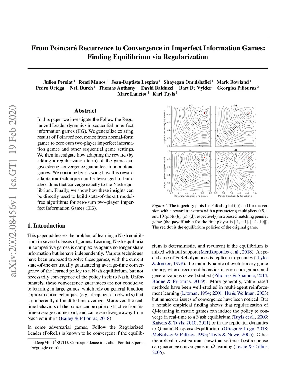 In this paper we investigate the Follow the Regularized Leader dynamics in sequential imperfect information games (IIG). We generalize existing results of Poincar\é recurrence from normal-form games to zero-sum two-player imperfect information games and other sequential game settings. We then investigate how adapting the reward (by adding a regularization term) of the game can give strong convergence guarantees in monotone games. We continue by showing how this reward adaptation technique can be leveraged to build algorithms that converge exactly to the Nash equilibrium. Finally, we show how these insights can be directly used to build state-of-the-art model-free algorithms for zero-sum two-player Imperfect Information Games (IIG).
