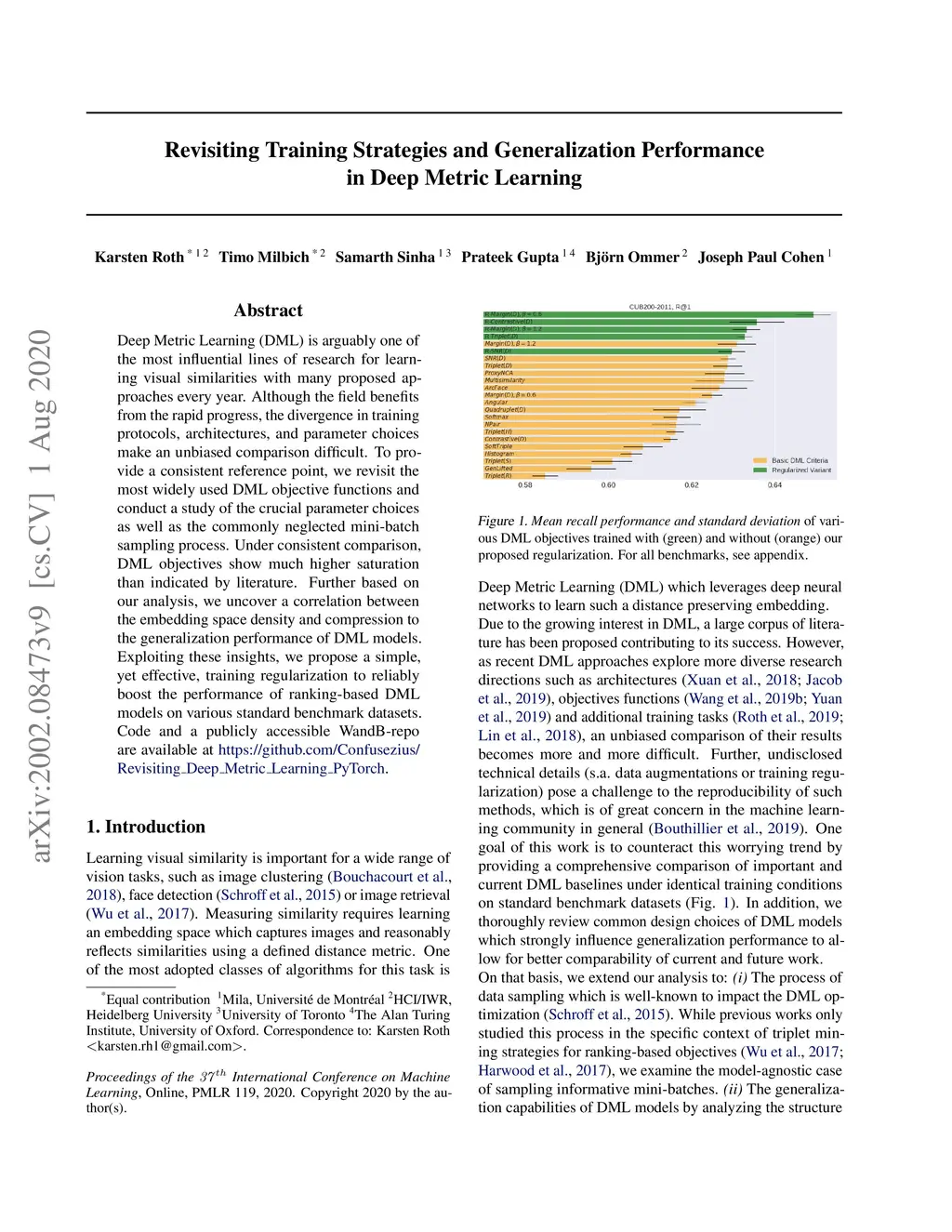 Deep Metric Learning (DML) is arguably one of the most influential lines of research for learning visual similarities with many proposed approaches every year. Although the field benefits from the rapid progress, the divergence in training protocols, architectures, and parameter choices make an unbiased comparison difficult. To provide a consistent reference point, we revisit the most widely used DML objective functions and conduct a study of the crucial parameter choices as well as the commonly neglected mini-batch sampling process. Under consistent comparison, DML objectives show much higher saturation than indicated by literature. Further based on our analysis, we uncover a correlation between the embedding space density and compression to the generalization performance of DML models. Exploiting these insights, we propose a simple, yet effective, training regularization to reliably boost the performance of ranking-based DML models on various standard benchmark datasets. Code and a publicly accessible WandB-repo are available at https://github.com/Confusezius/Revisiting_Deep_Metric_Learning_PyTorch.