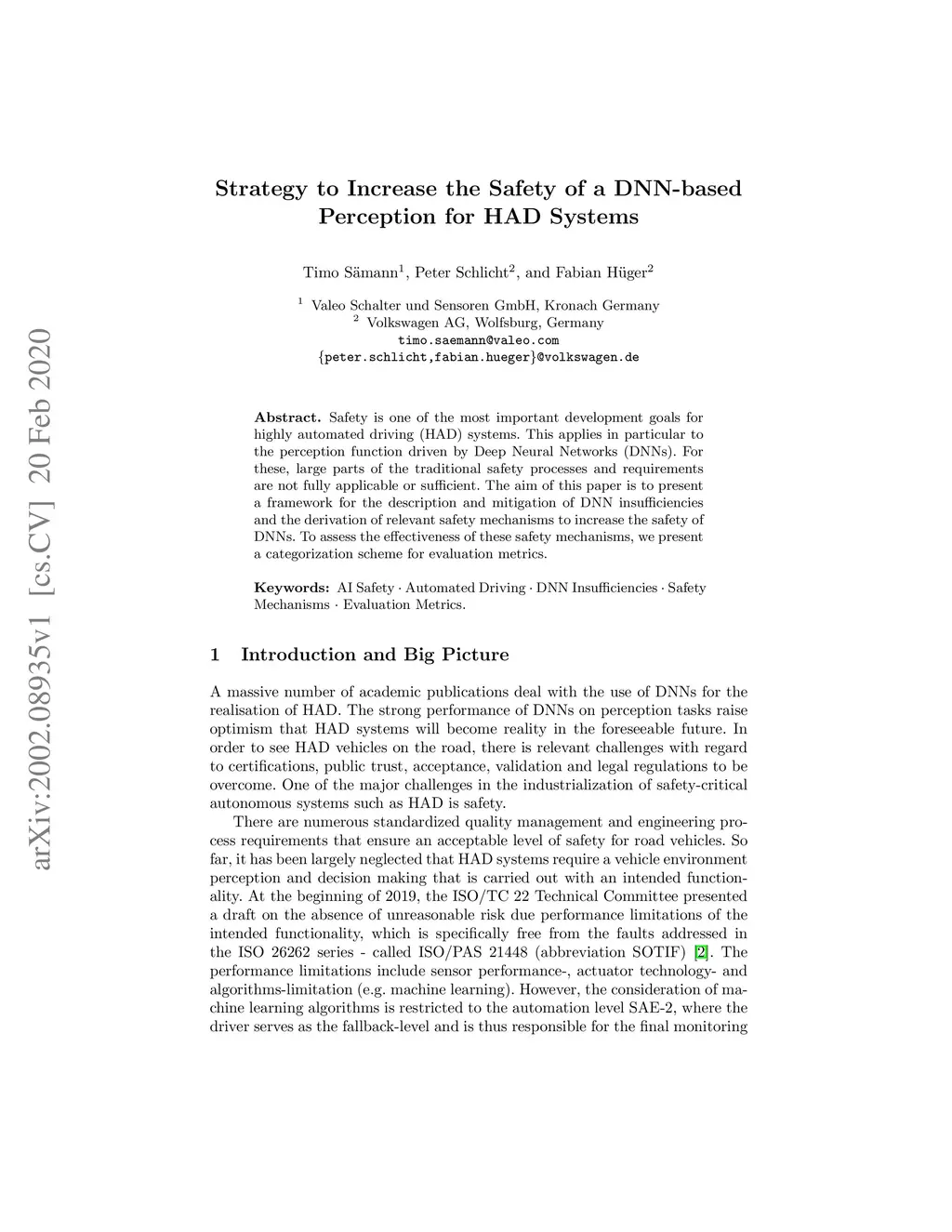 Strategy to Increase the Safety of a DNN-based Perception for HAD
