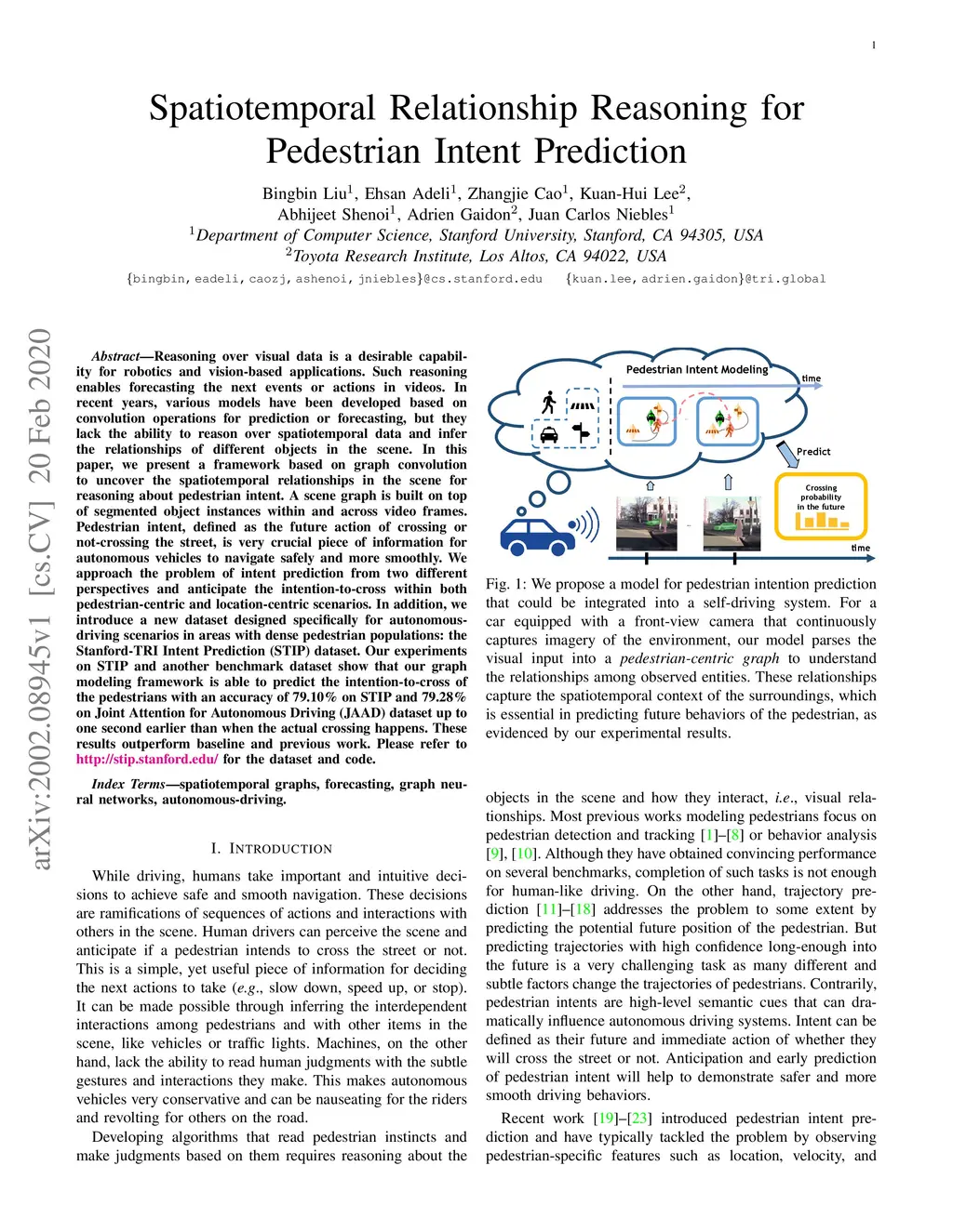 Spatiotemporal Relationship Reasoning for Pedestrian Intent Prediction