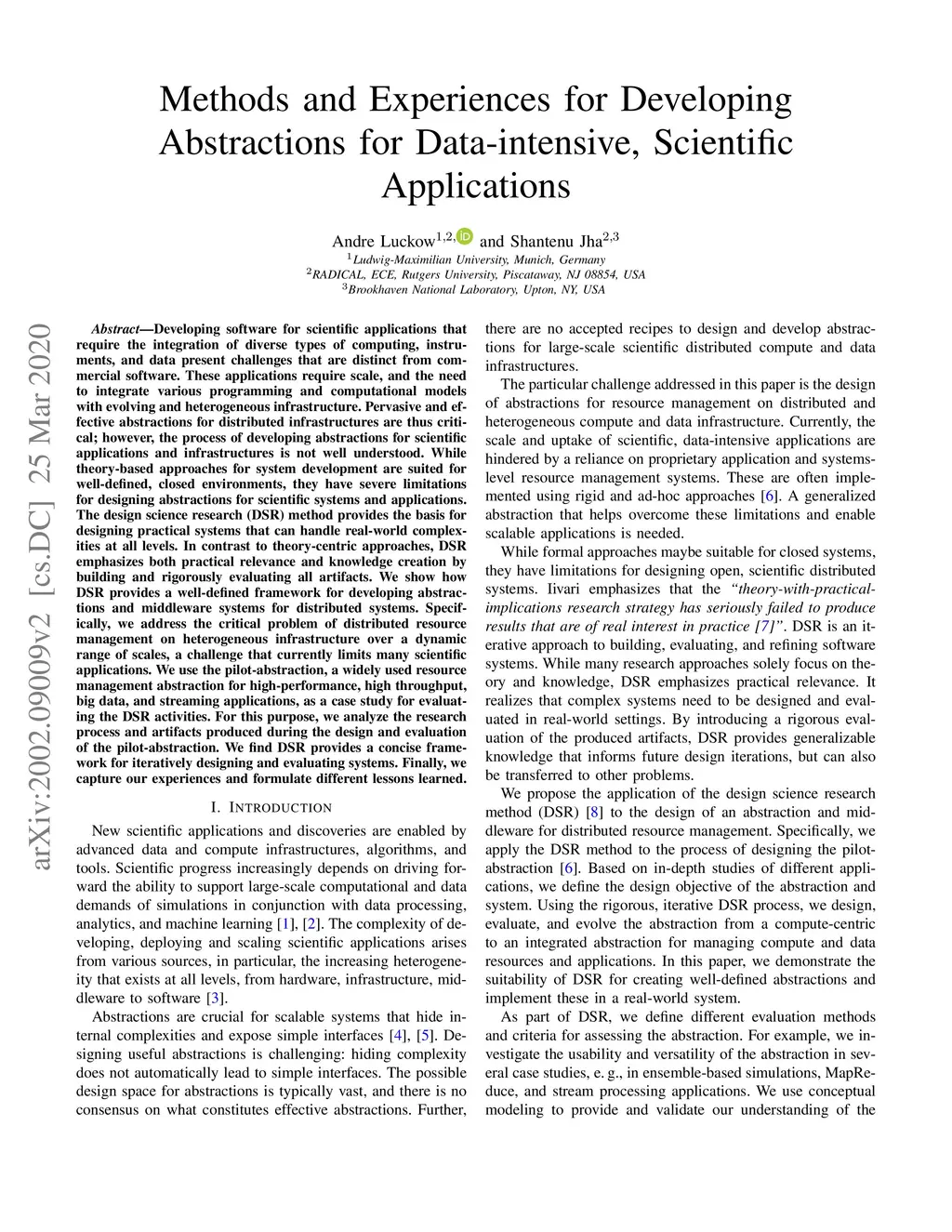 Developing software for scientific applications that require the integration of diverse types of computing, instruments, and data present challenges that are distinct from commercial software. These applications require scale, and the need to integrate various programming and computational models with evolving and heterogeneous infrastructure. Pervasive and effective abstractions for distributed infrastructures are thus critical; however, the process of developing abstractions for scientific applications and infrastructures is not well understood. While theory-based approaches for system development are suited for well-defined, closed environments, they have severe limitations for designing abstractions for scientific systems and applications. The design science research (DSR) method provides the basis for designing practical systems that can handle real-world complexities at all levels. In contrast to theory-centric approaches, DSR emphasizes both practical relevance and knowledge creation by building and rigorously evaluating all artifacts. We show how DSR provides a well-defined framework for developing abstractions and middleware systems for distributed systems. Specifically, we address the critical problem of distributed resource management on heterogeneous infrastructure over a dynamic range of scales, a challenge that currently limits many scientific applications. We use the pilot-abstraction, a widely used resource management abstraction for high-performance, high throughput, big data, and streaming applications, as a case study for evaluating the DSR activities. For this purpose, we analyze the research process and artifacts produced during the design and evaluation of the pilot-abstraction. We find DSR provides a concise framework for iteratively designing and evaluating systems. Finally, we capture our experiences and formulate different lessons learned.