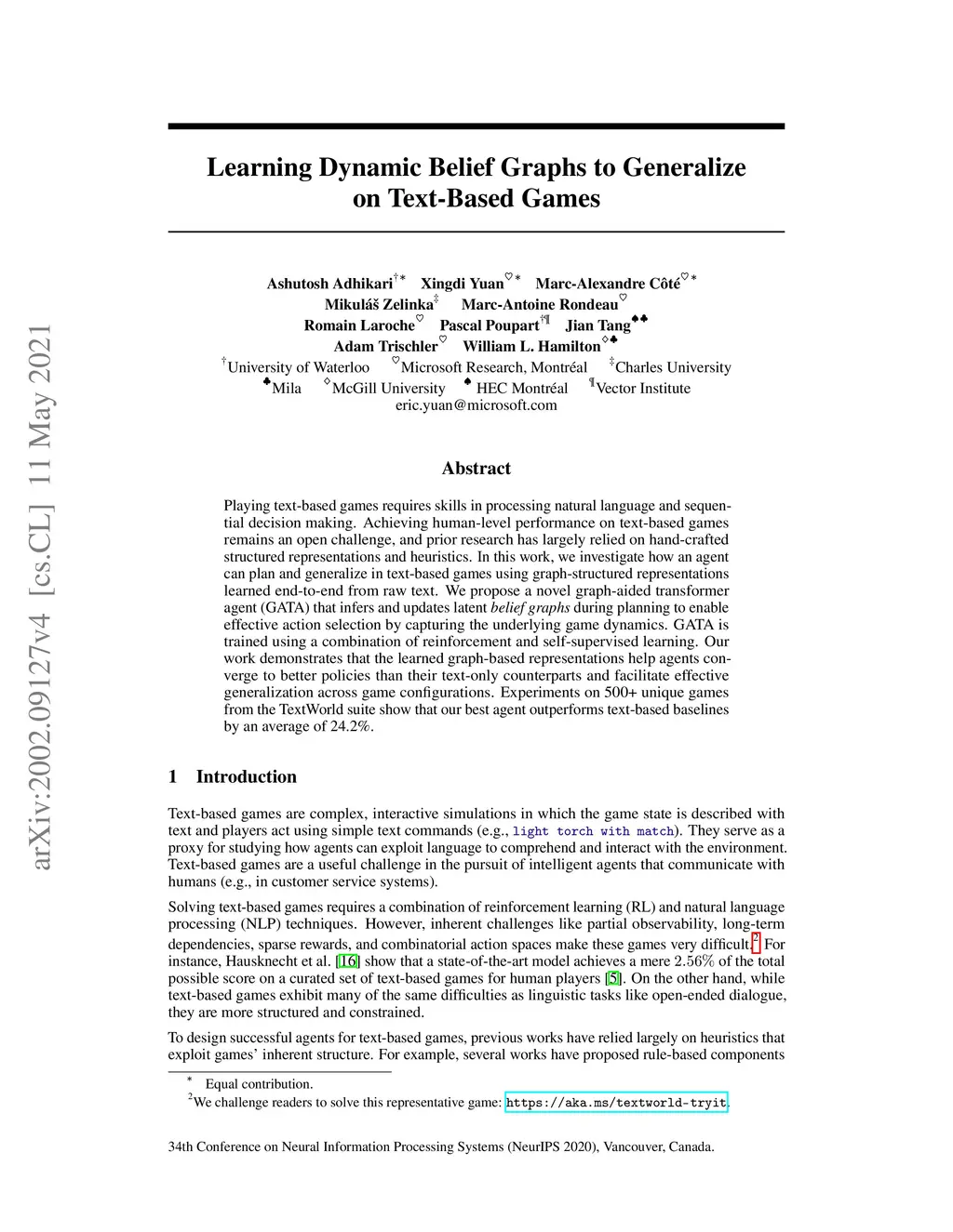 Learning Dynamic Knowledge Graphs to Generalize on Text-Based Games