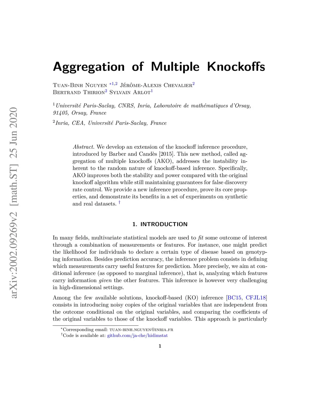 We develop an extension of the Knockoff Inference procedure, introduced by Barber and Candes (2015). This new method, called Aggregation of Multiple Knockoffs (AKO), addresses the instability inherent to the random nature of Knockoff-based inference. Specifically, AKO improves both the stability and power compared with the original Knockoff algorithm while still maintaining guarantees for False Discovery Rate control. We provide a new inference procedure, prove its core properties, and demonstrate its benefits in a set of experiments on synthetic and real datasets.