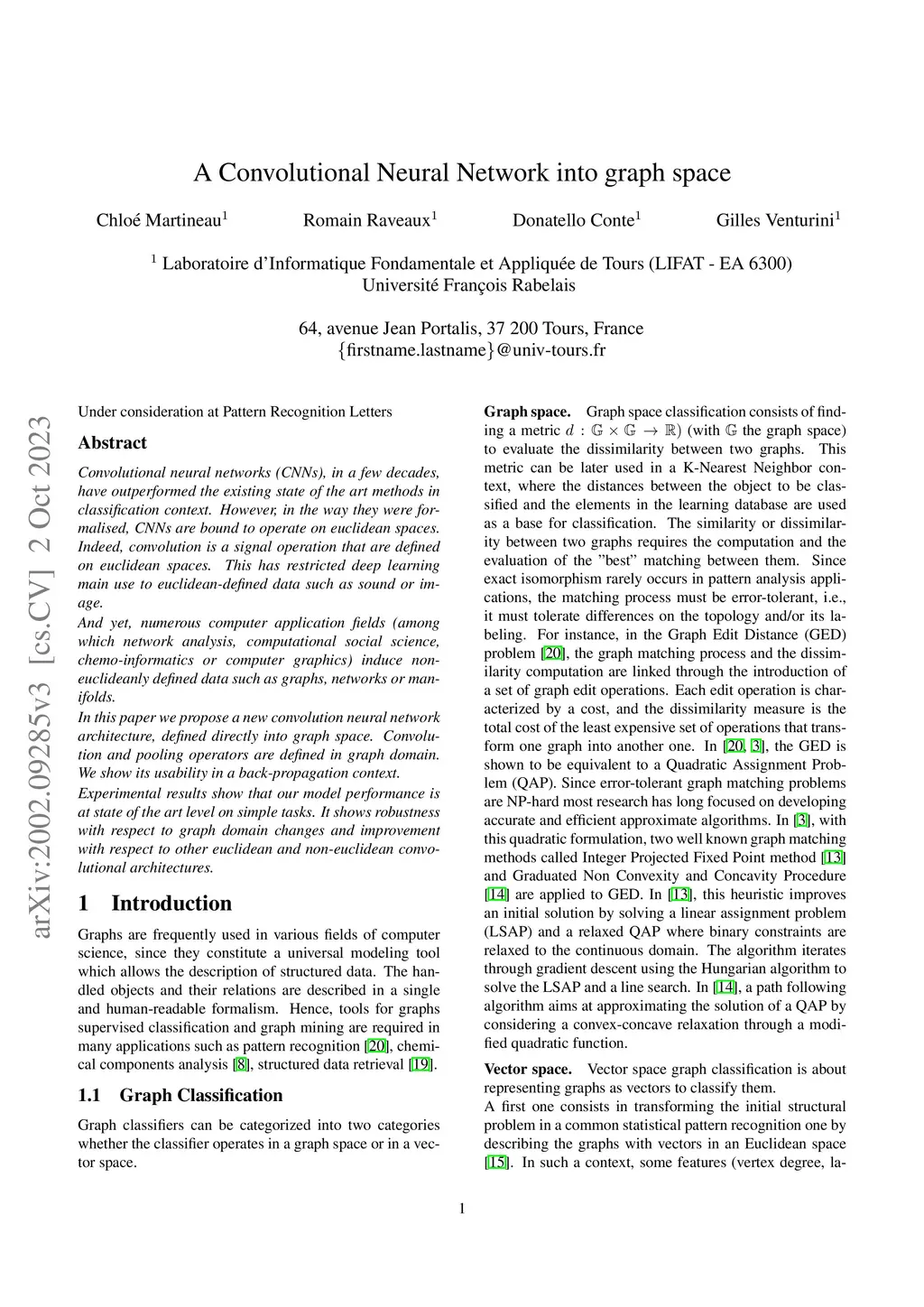 Convolutional neural networks (CNNs), in a few decades, have outperformed the existing state of the art methods in classification context. However, in the way they were formalised, CNNs are bound to operate on euclidean spaces. Indeed, convolution is a signal operation that are defined on euclidean spaces. This has restricted deep learning main use to euclidean-defined data such as sound or image. And yet, numerous computer application fields (among which network analysis, computational social science, chemo-informatics or computer graphics) induce non-euclideanly defined data such as graphs, networks or manifolds. In this paper we propose a new convolution neural network architecture, defined directly into graph space. Convolution and pooling operators are defined in graph domain. We show its usability in a back-propagation context. Experimental results show that our model performance is at state of the art level on simple tasks. It shows robustness with respect to graph domain changes and improvement with respect to other euclidean and non-euclidean convolutional architectures.