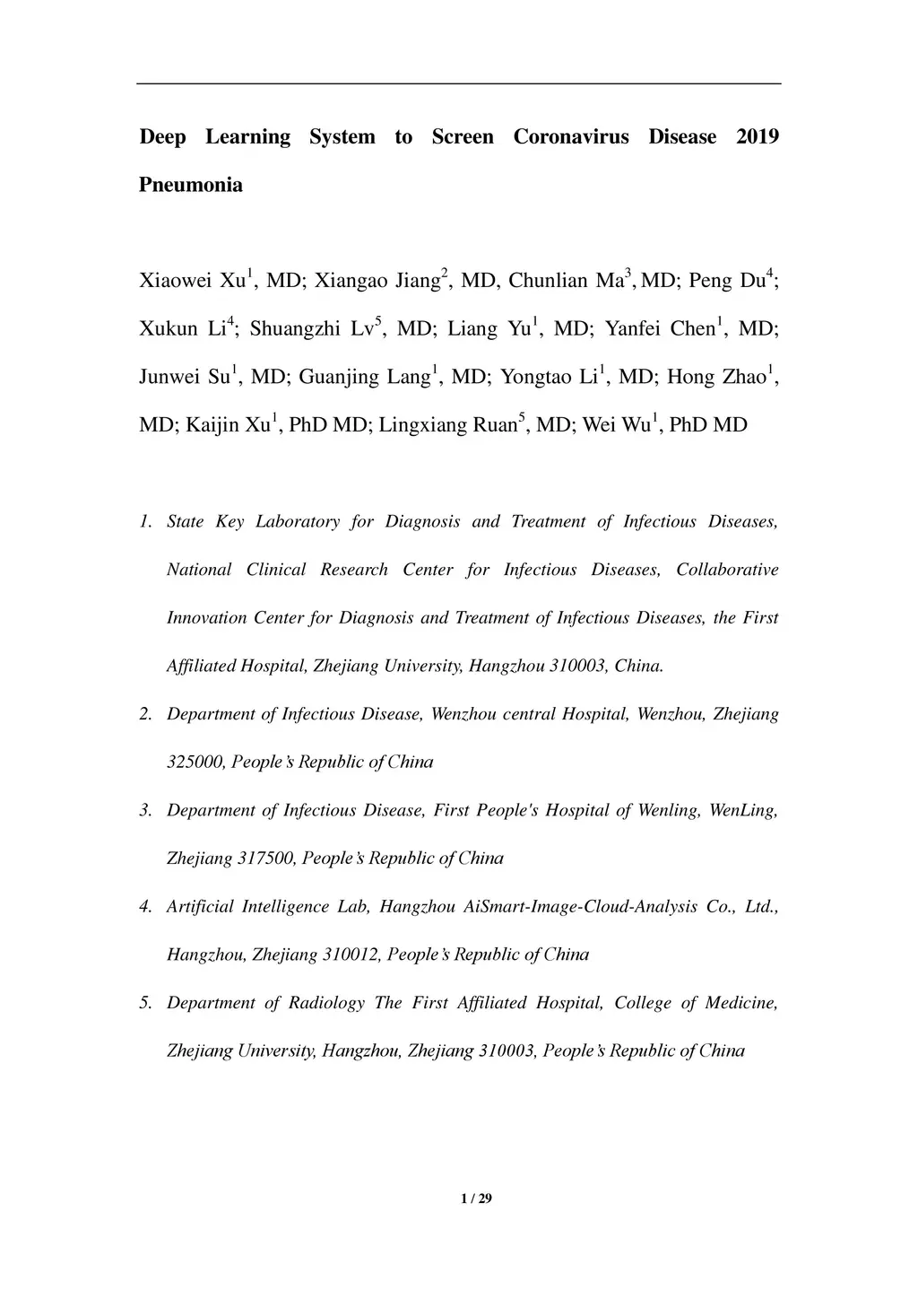 Deep Learning System to Screen Coronavirus Disease 2019 Pneumonia