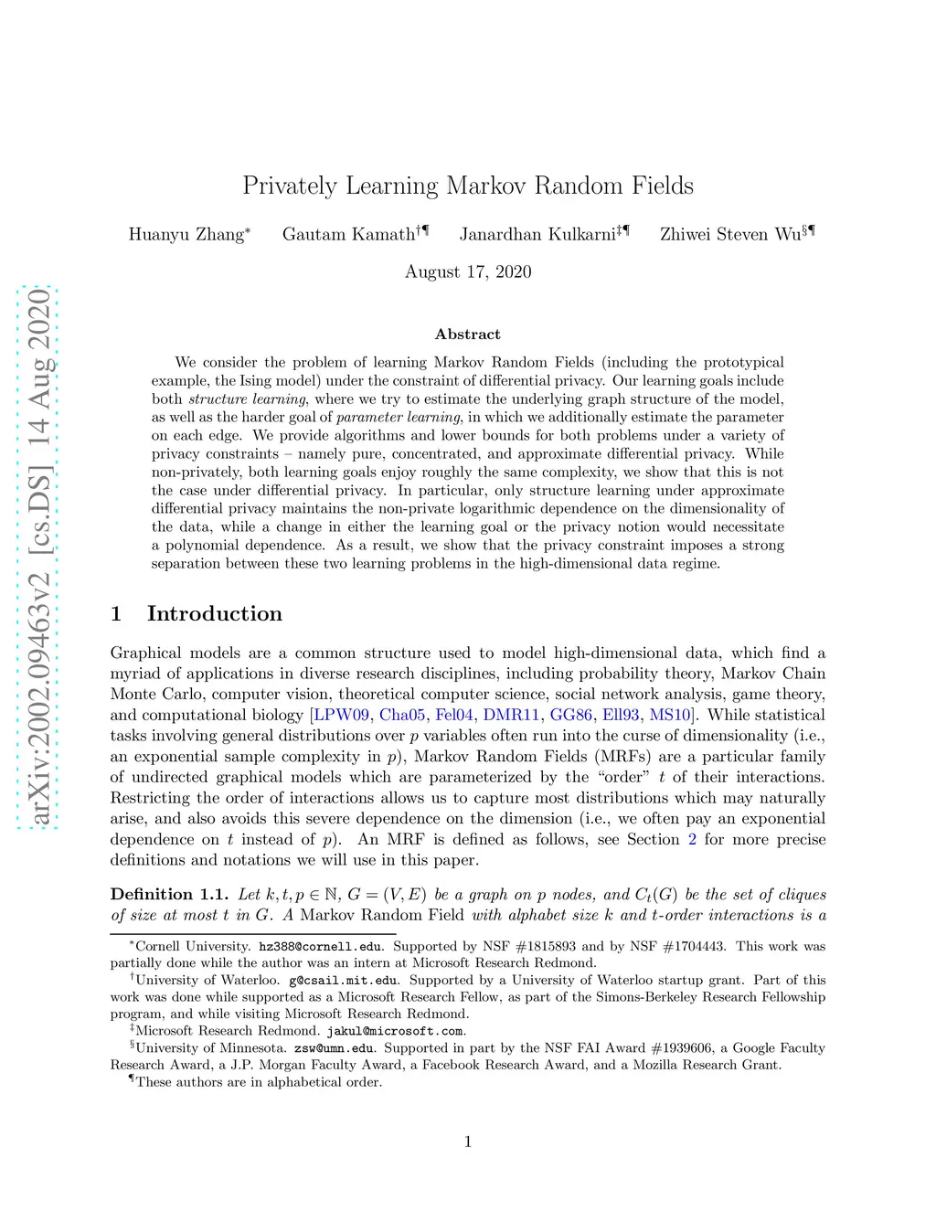 Privately Learning Markov Random Fields