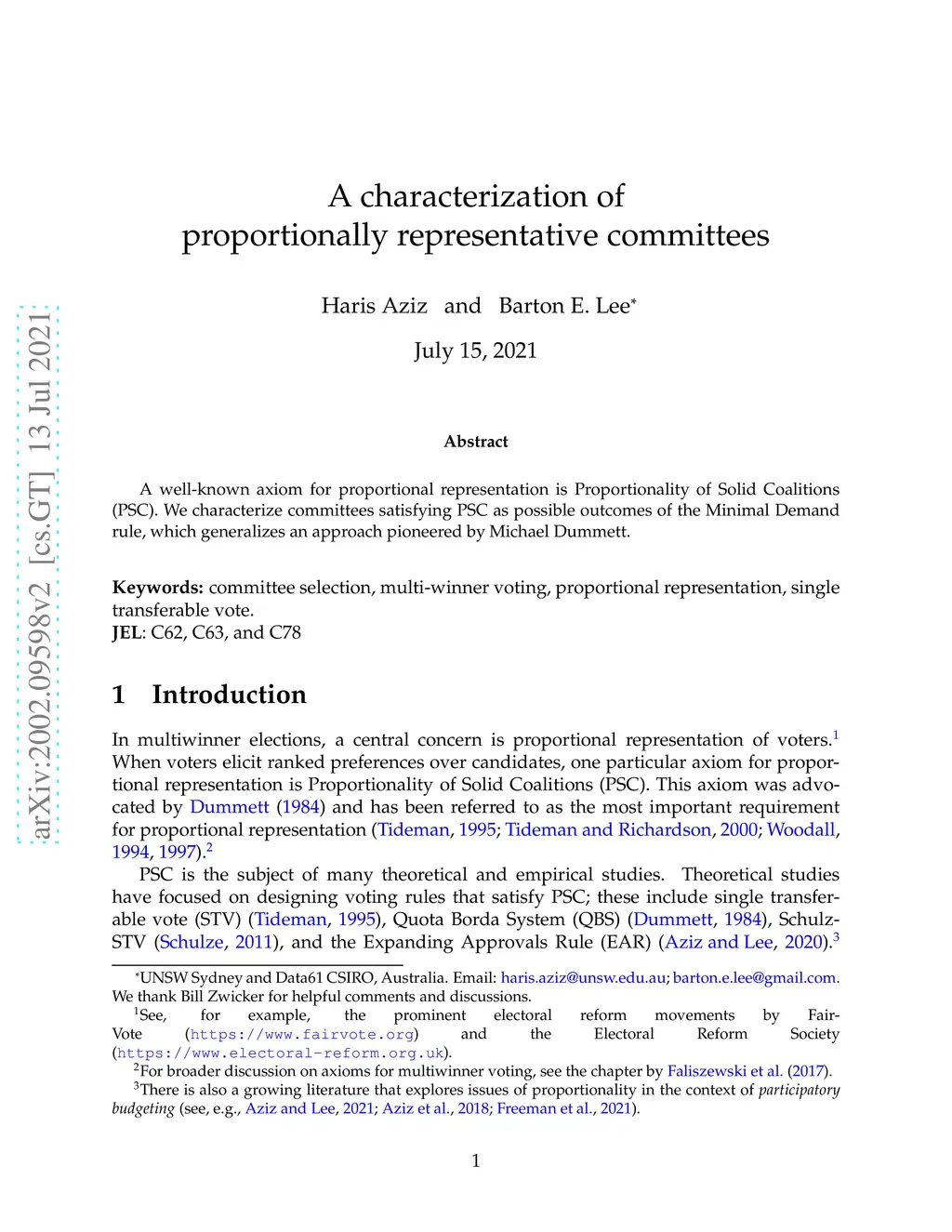 A well-known axiom for proportional representation is Proportionality of Solid Coalitions (PSC). We characterize committees satisfying PSC as possible outcomes of the Minimal Demand rule, which generalizes an approach pioneered by Michael Dummett.