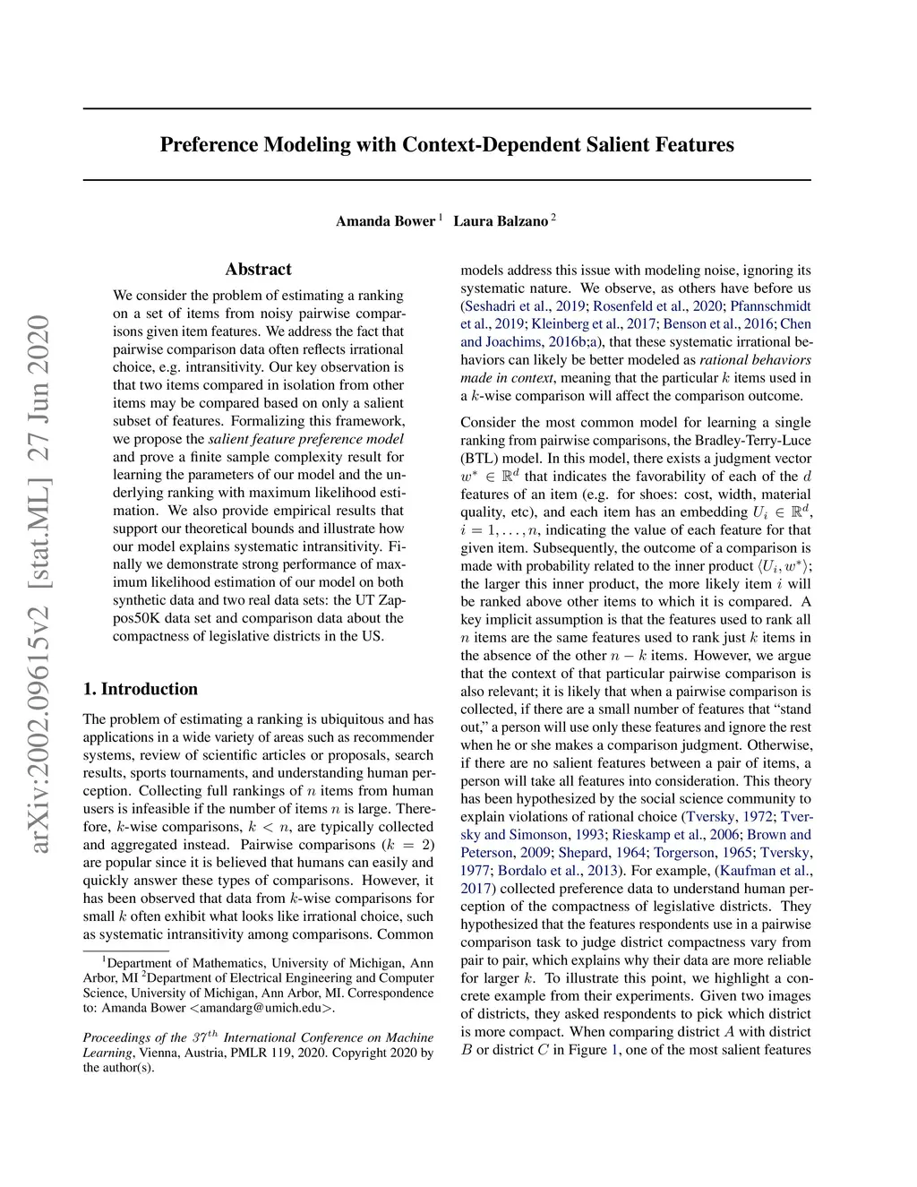 Preference Modeling with Context-Dependent Salient Features