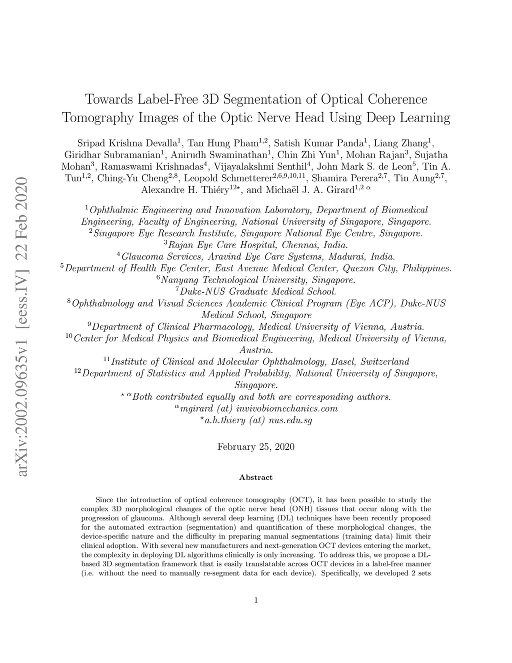 Towards Label-Free 3D Segmentation of Optical Coherence Tomography