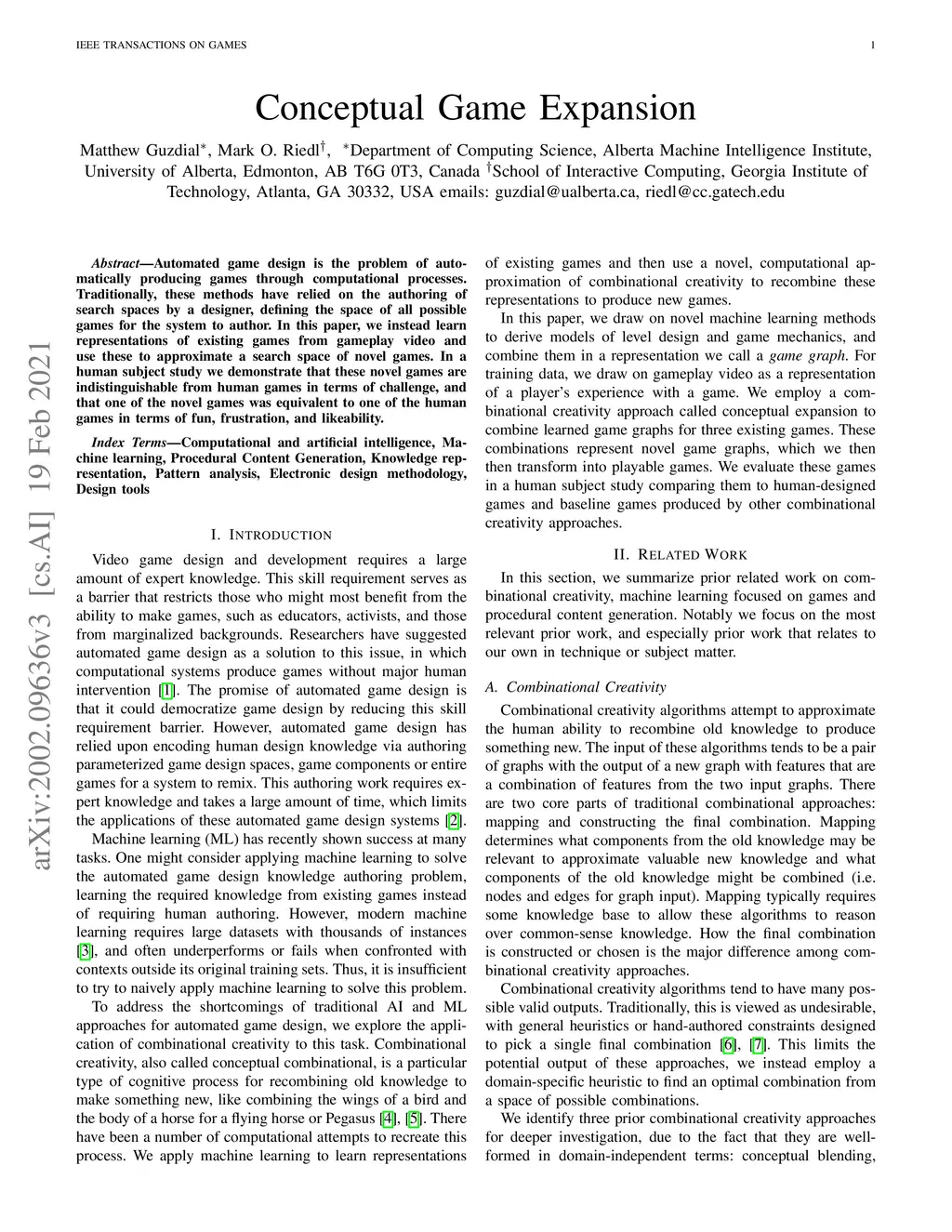 IEEE Transactions on Games (IEEE Trans. Games), 2020