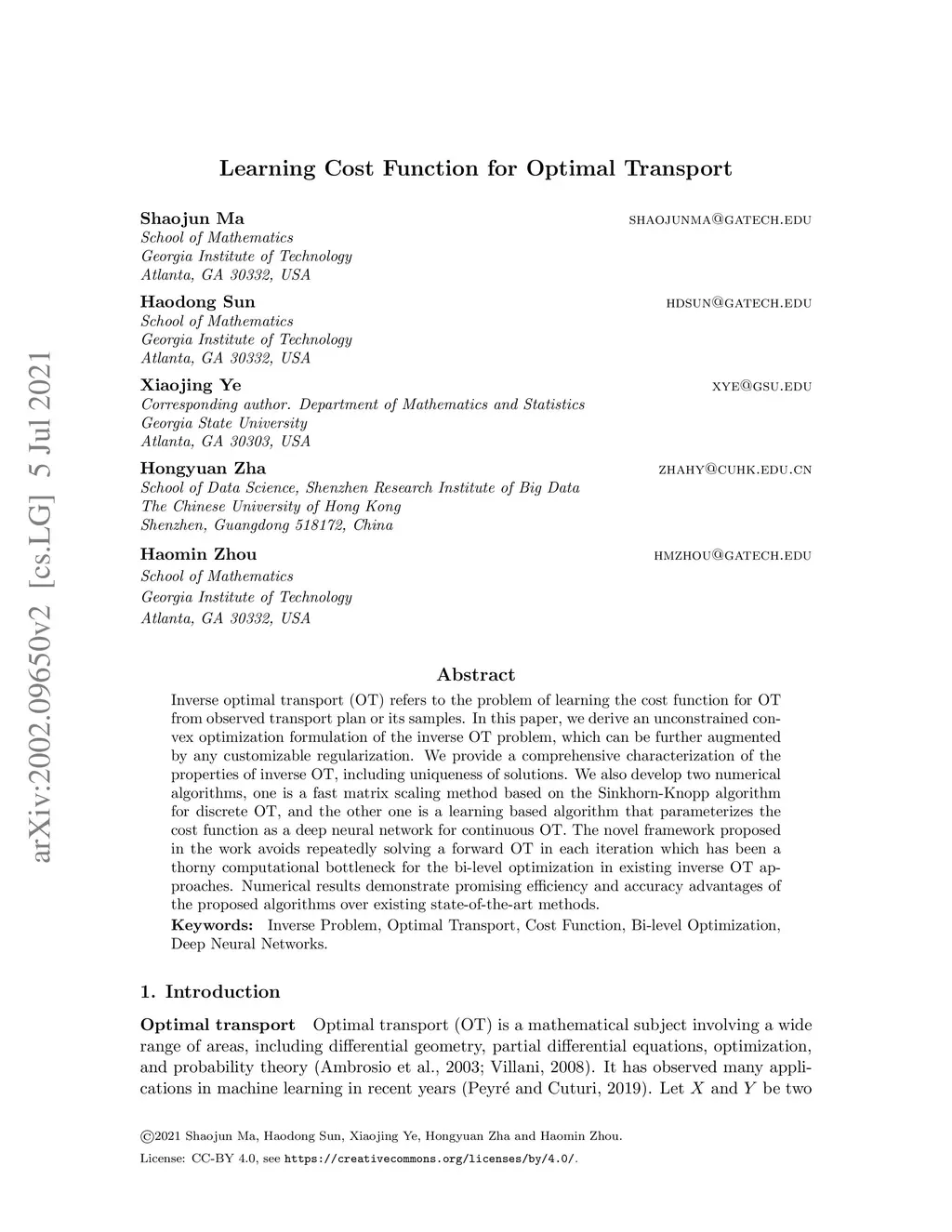 Learning Cost Functions for Optimal Transport