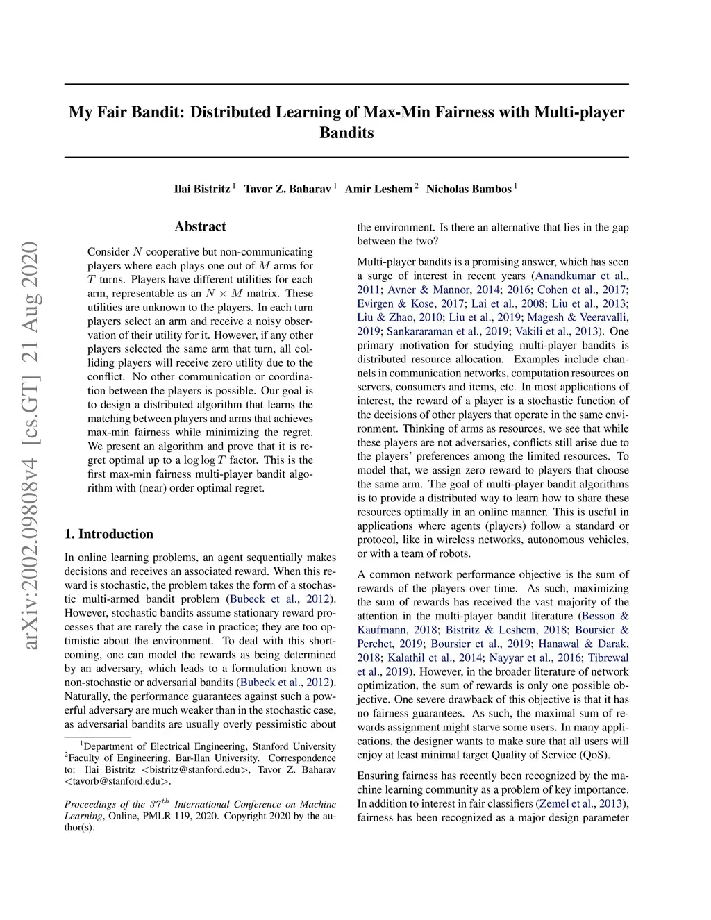 My Fair Bandit: Distributed Learning of Max-Min Fairness with