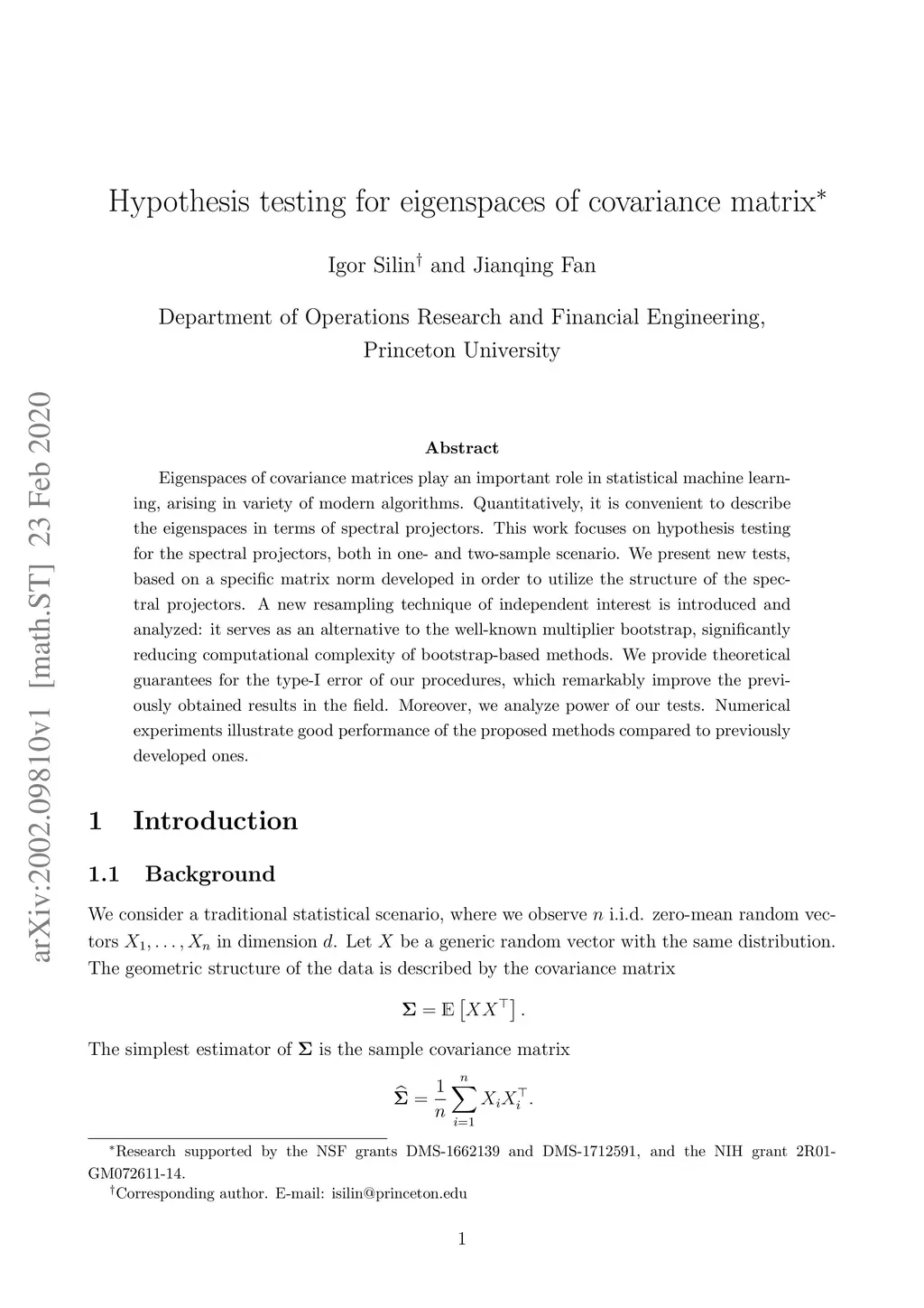 Hypothesis testing for eigenspaces of covariance matrix