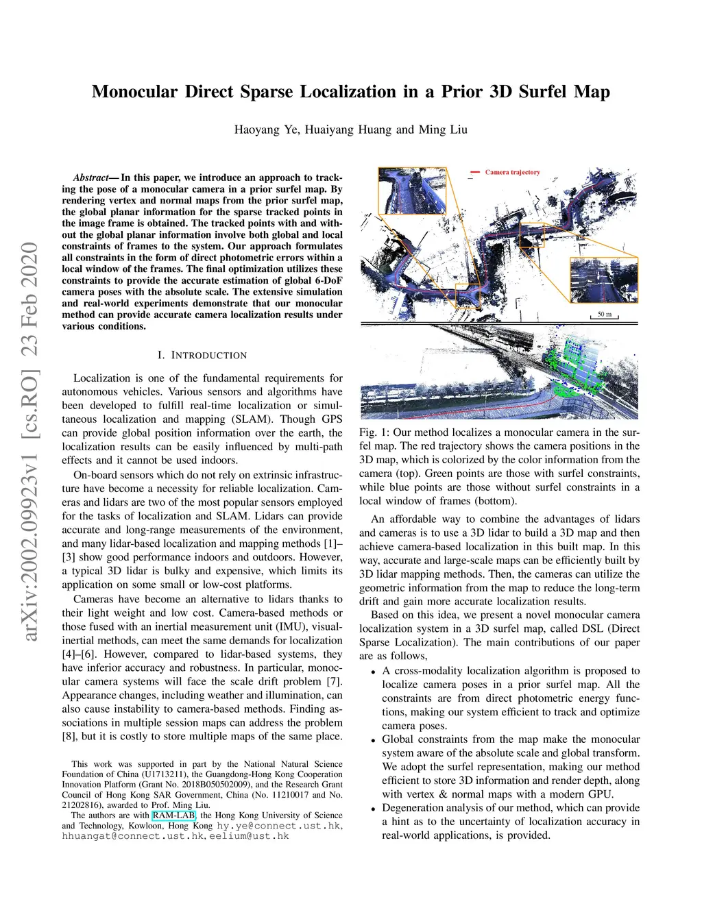 Monocular Direct Sparse Localization in a Prior 3D Surfel Map